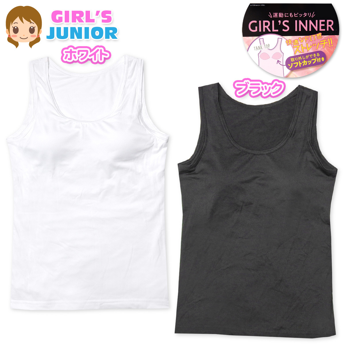 送料無料 女児 ジュニア ソフトカップ付き タンクトップ エステルベア天 ストレッチ 快適なFIT感 下着 yg-0789 メール便対応