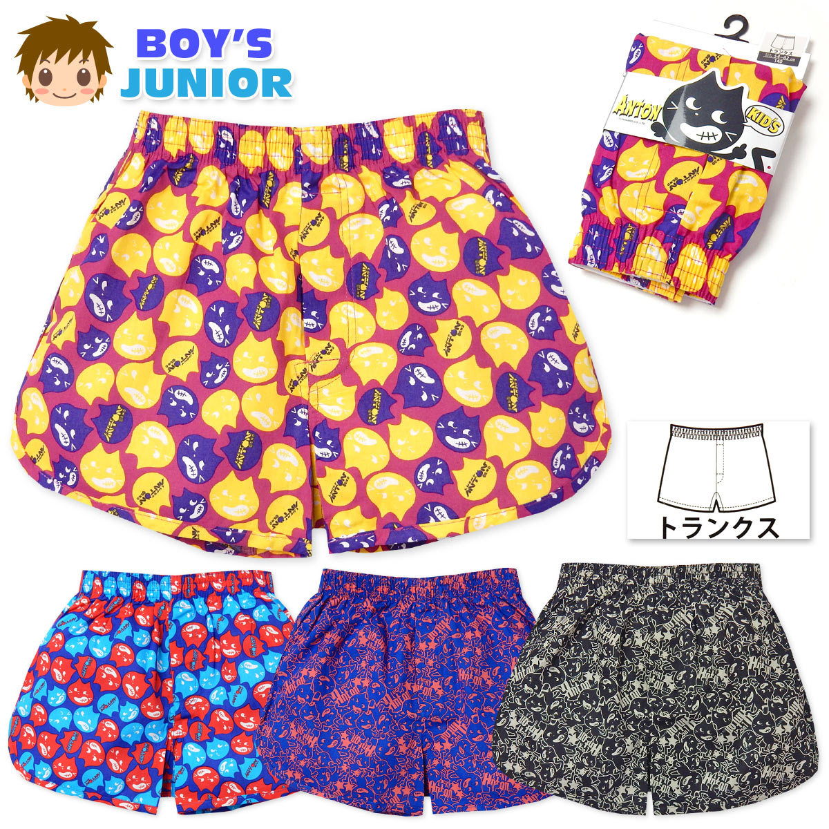 送料無料 男児 ジュニア 綿100% トランクス 前開きボタン ネコ 総柄 肌着 下着 インナー 140cm 150cm yg-1407 メール便対応
