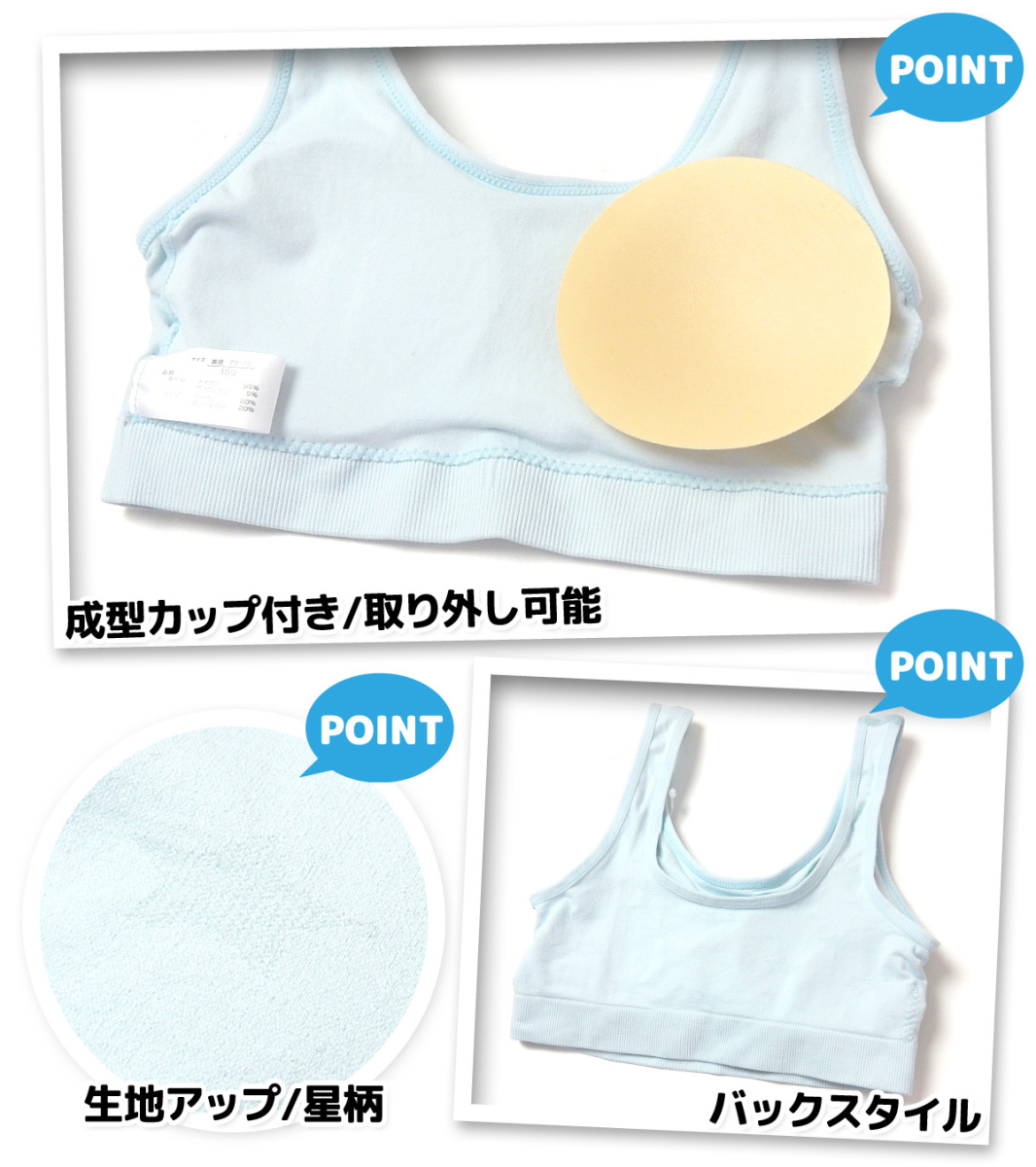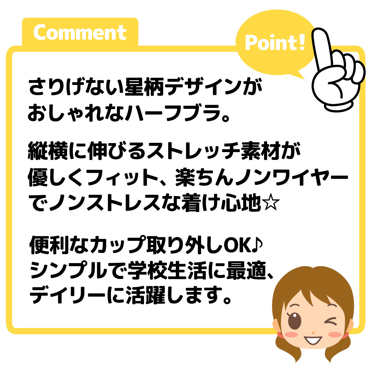 送料無料 女児 ジュニア ハーフブラ カップ取り外しOK ノンワイヤー 縦横ストレッチ 星柄 下着 150cm 160cm yg-1439 メール便対応