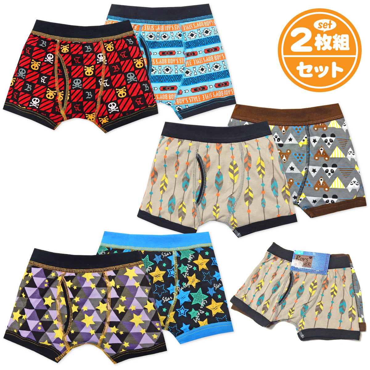 柄デザインがおしゃれな2枚組男児