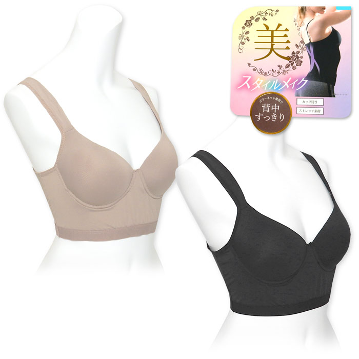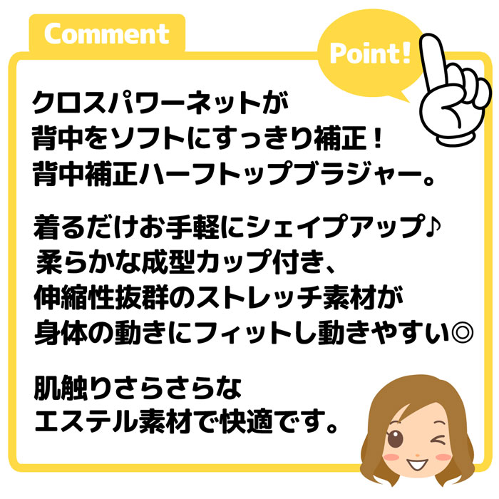 送料無料 婦人 レディース 背中補正 ハーフトップブラ クロスパワーネット 背中すっきり ストレッチ 成型カップ 下着 yg-1537 メール便対応
