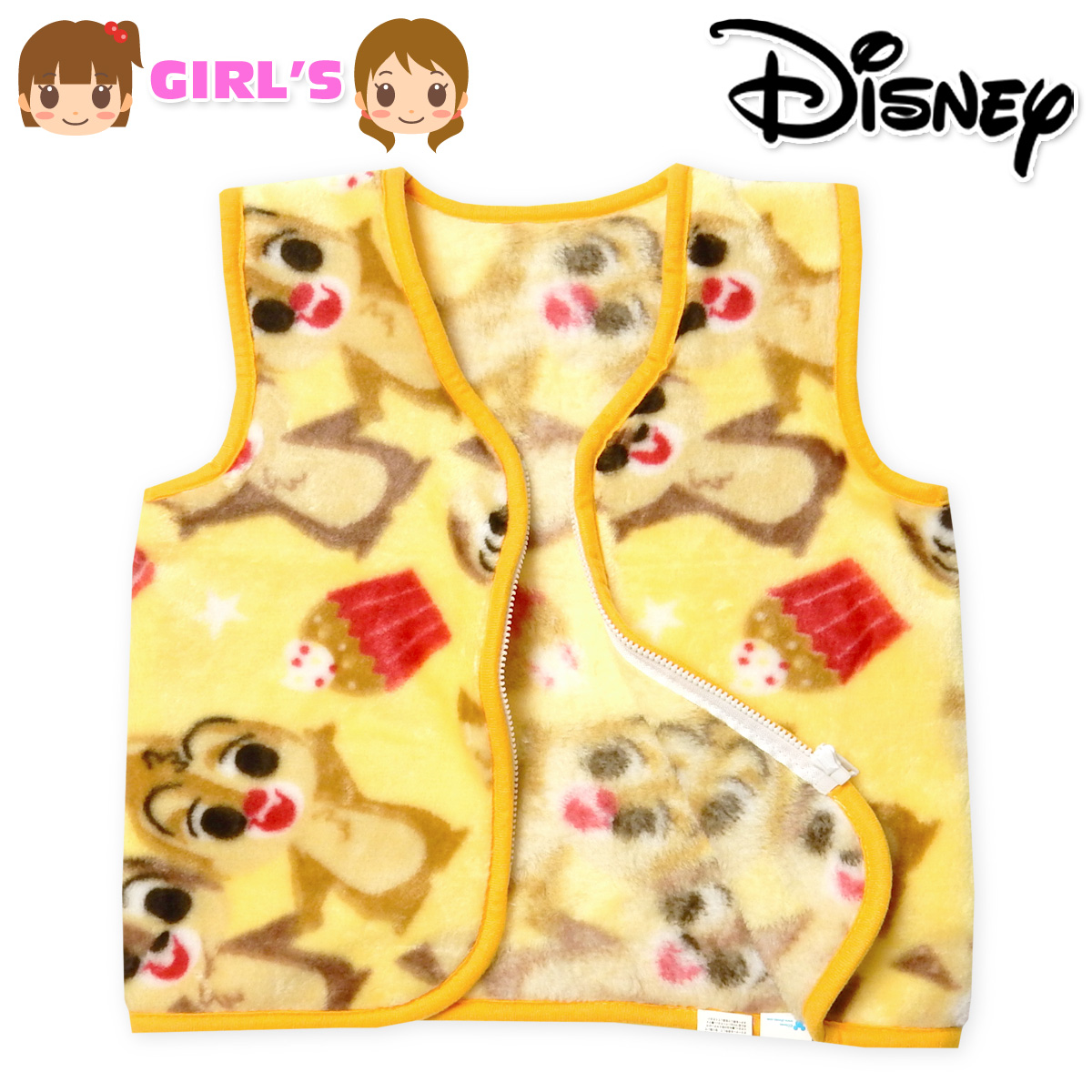 送料無料 女児 キッズ ジュニア ニューマイヤー スリーパー ベスト Disney ディズニー チップ&デール あったか 100-120cm 130-150cm yg-1632c-ye メール便対応