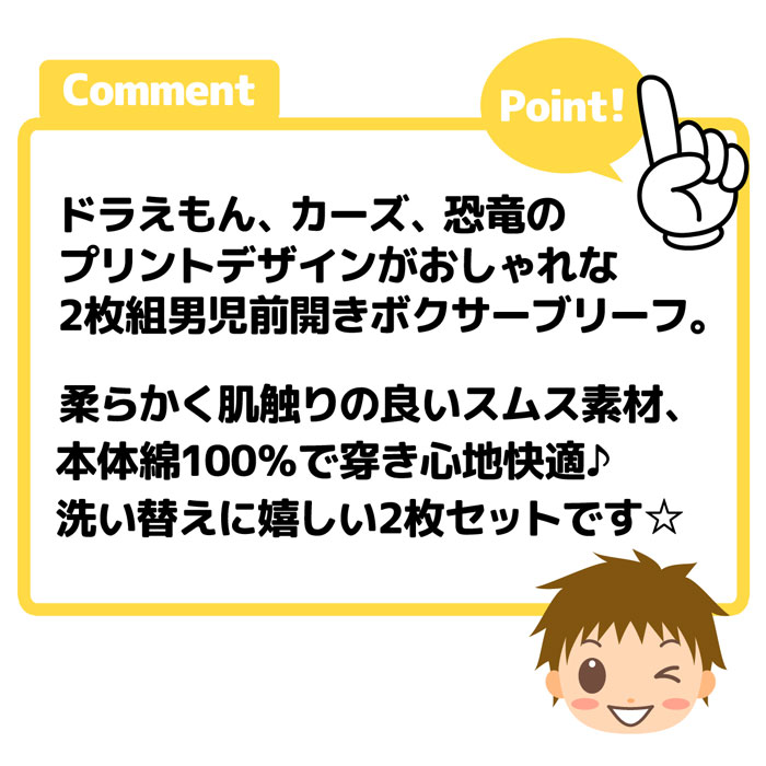 送料無料 2枚組セット 男児 キッズ ボクサー ブリーフ 前開き ドラえもん カーズ 恐竜 スムス 本体綿100% 下着 yg-1688 メール便対応