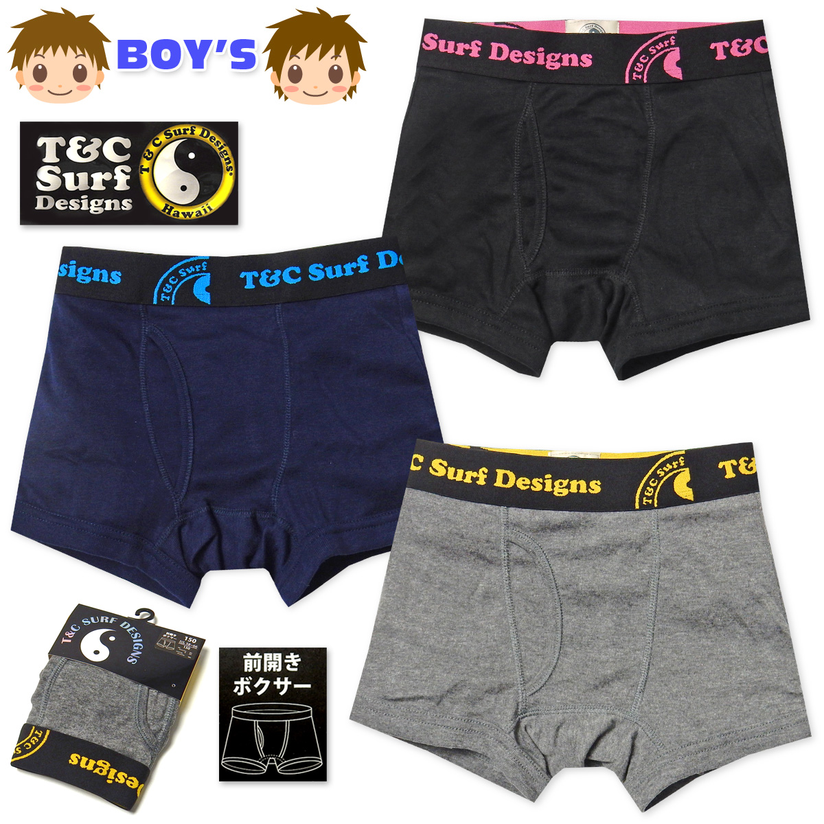 送料無料 男児 キッズ ジュニア ボクサー ブリーフ T&C 前開き 綿混素材 伸縮性 ロゴ 肌着 下着 インナー yg-1758 メール便対応
