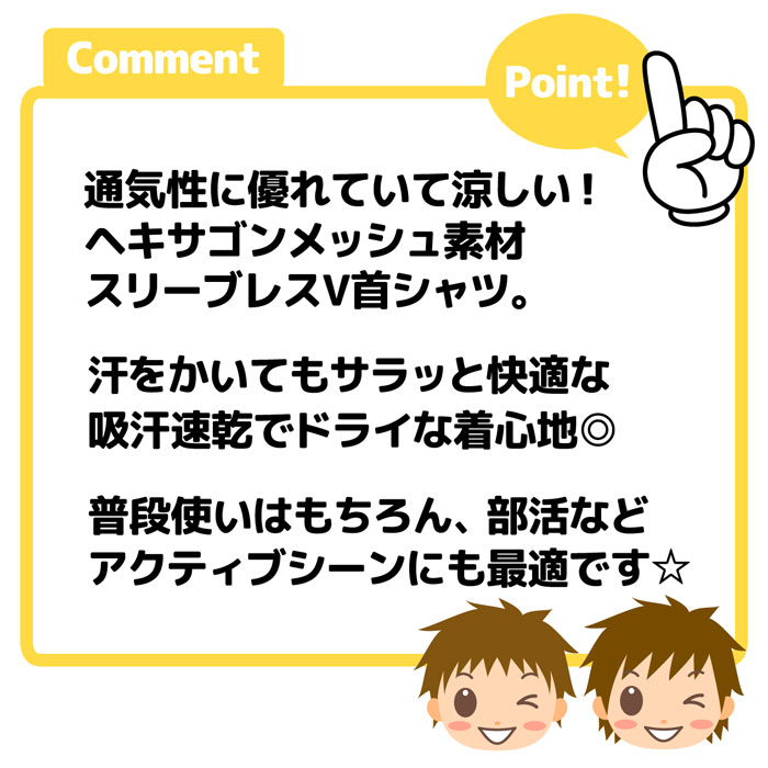 送料無料 男児 キッズ ジュニア 吸汗速乾 スリーブレス シャツ V首 ヘキサゴンメッシュ 通気性 下着 子供 男の子 yg-2145 メール便対応