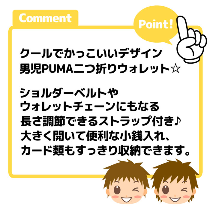 送料無料 男児 キッズ ジュニア 財布 ウォレット PUMA/プーマ 二つ折り ストラップ付き 子供 男の子 yg-2157 メール便対応