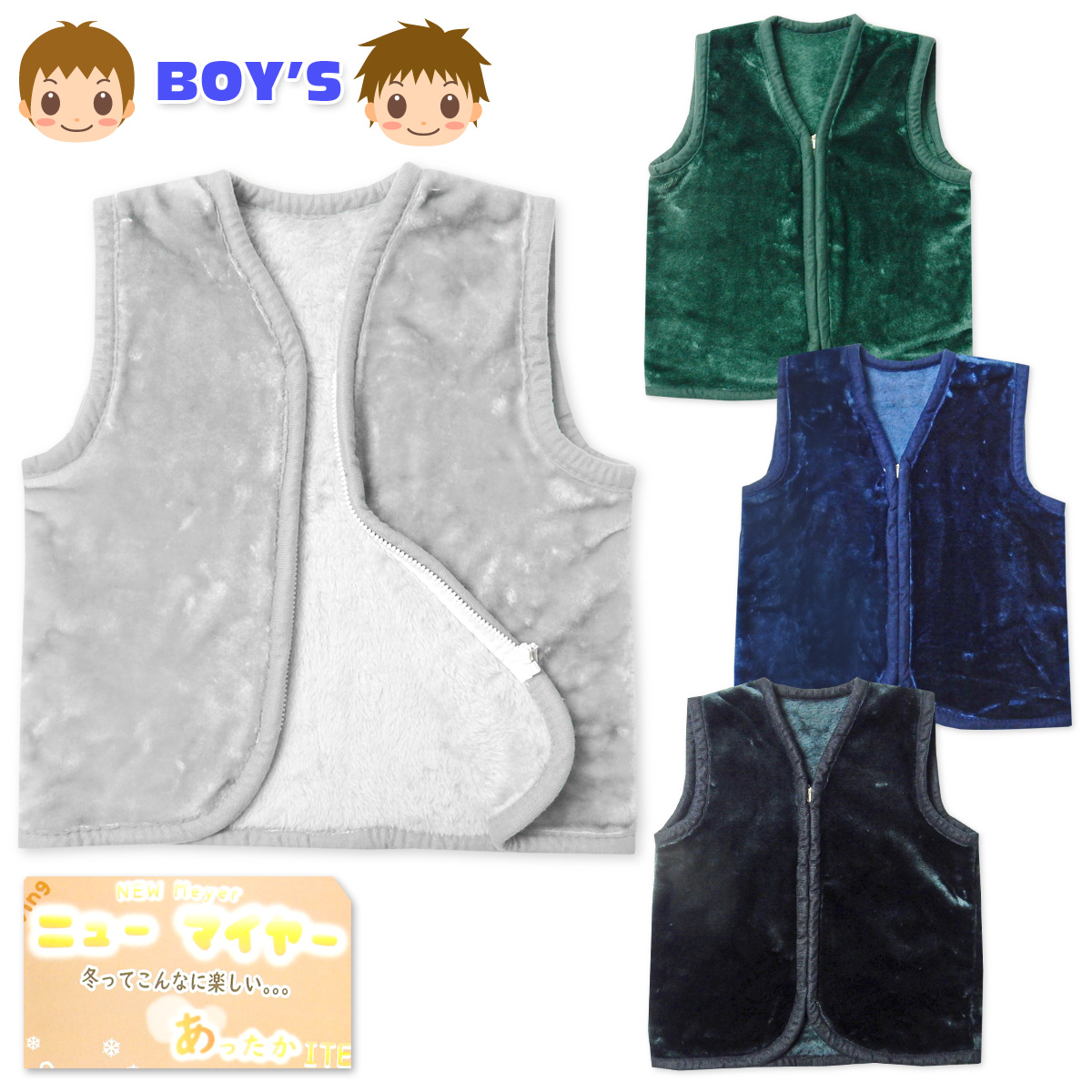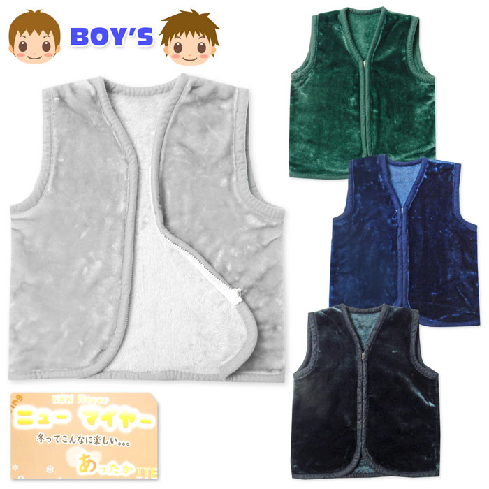 送料無料 男児 キッズ ジュニア ニューマイヤー素材 スリーパー ベスト あったか 前開きジップ パジャマ 男の子 100-120cm 130-150cm yg-2214 メール便対応