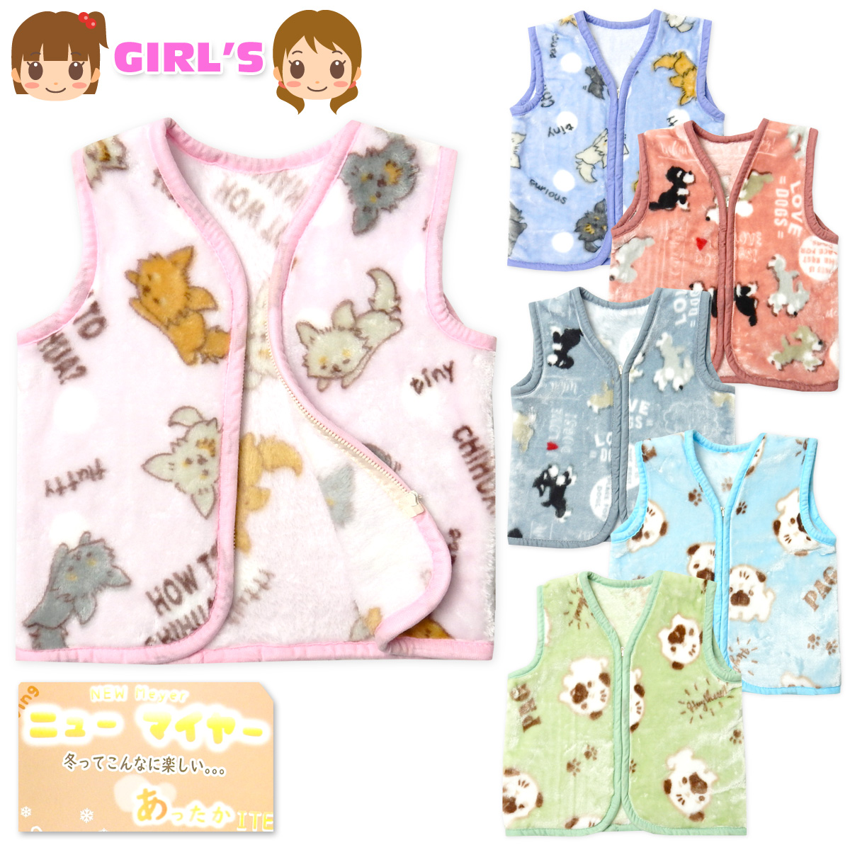 送料無料 女児 キッズ ジュニア ニューマイヤー素材 スリーパー ベスト あったか 前開きジップ パジャマ 100-120cm 130-150cm yg-2215 メール便対応