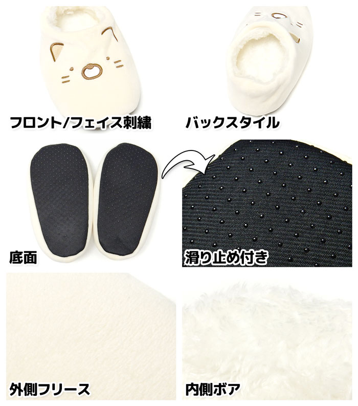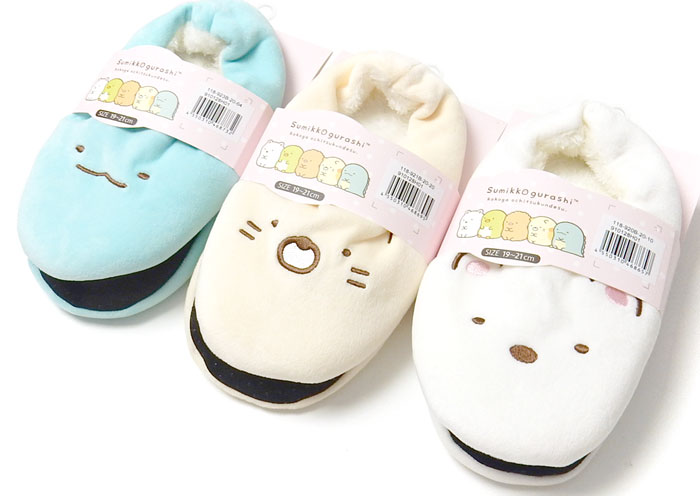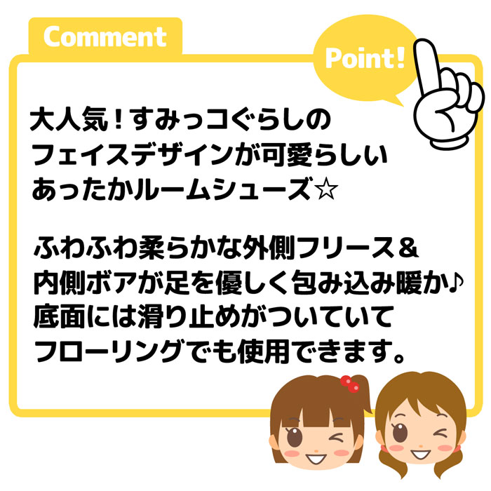 送料無料 女児 キッズ ジュニア フリース&ボア ルームシューズ すみっコぐらし あったか素材 滑り止め付き 16-18cm 19-21cm yg-2258 メール便対応