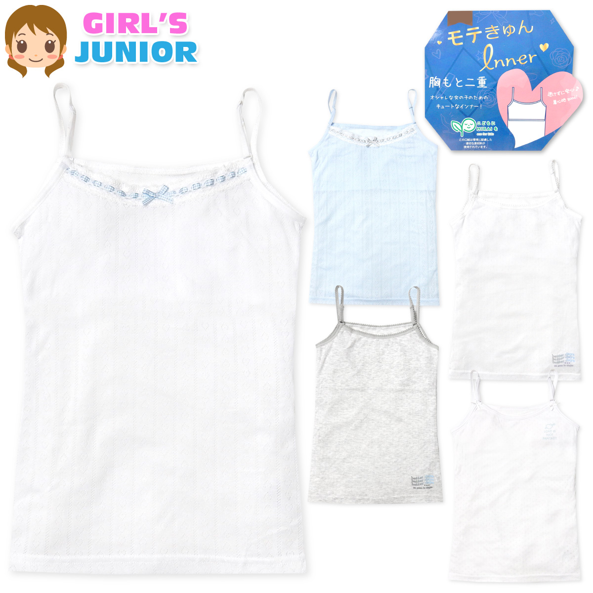 送料無料 女児 ジュニア 胸2重 キャミソール 透けずに安心 メッシュ リボン レース ロゴ 下着 子供 女の子 yg-2278 メール便対応