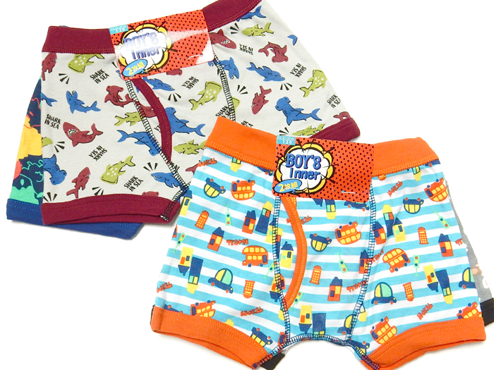 送料無料 2枚組セット 男児 キッズ ボクサー ブリーフ 前開き 綿混 サメ オバケ のりもの いぬ 下着 パンツ yg-2415 メール便対応