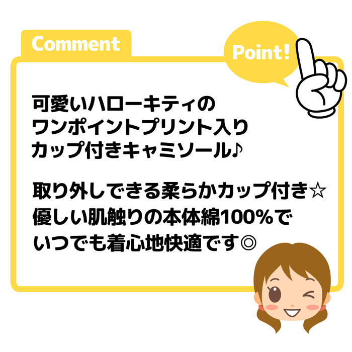 送料無料 女児 ジュニア カップ付き キャミソール ハローキティ 本体綿100% 下着 子供 女の子 140cm 150cm 160cm 165cm yg-2430 メール便対応