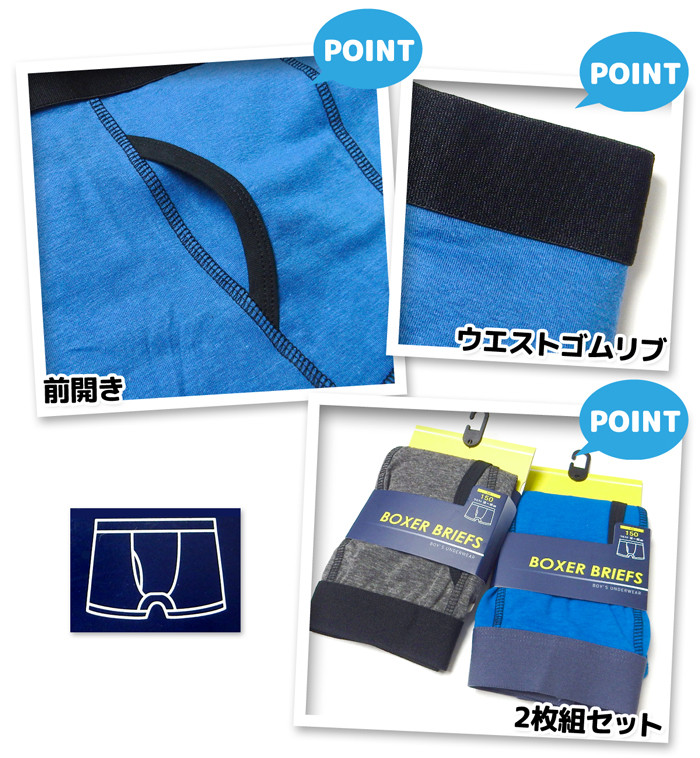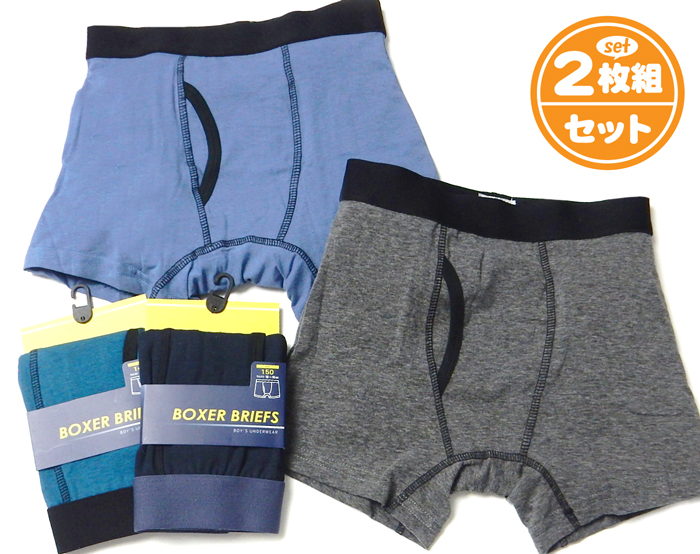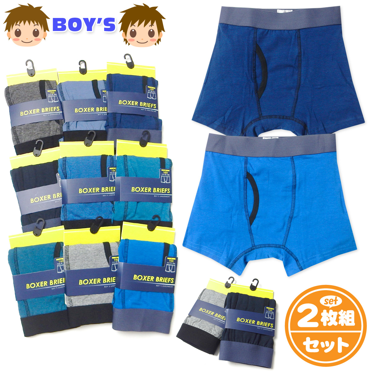 送料無料 2枚組セット 男児 キッズ ジュニア ボクサー ブリーフ 前開き 綿混 伸縮性 無地 下着 子供 男の子 yg-2517 メール便対応