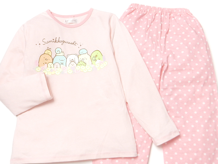 送料無料 女児 キッズ ジュニア 天竺 長袖 パジャマ すみっコぐらし 上下組 本体綿100% 子供服 女の子 yg-2798a-pk メール便対応