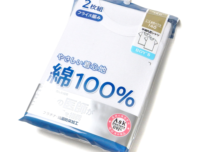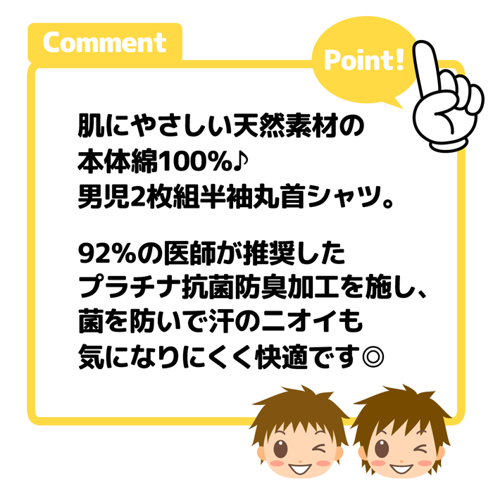 送料無料 2枚組セット 男児 キッズ ジュニア 半袖 シャツ 丸首 プラチナ抗菌防臭 本体綿100% 下着 子供 男の子 yg-2967 メール便対応