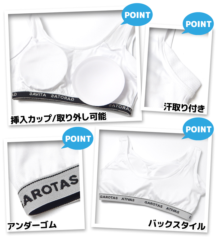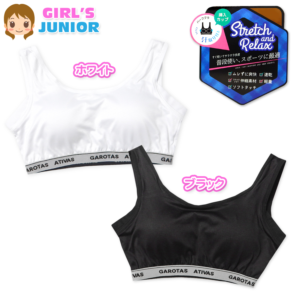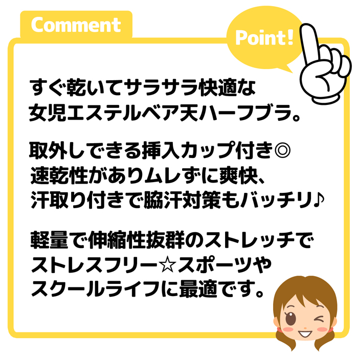 送料無料 女児 ジュニア 汗取り付き ハーフブラ 挿入カップ エステルベア天 速乾 ストレッチ 軽量 下着 子供 女の子 yg-2968 メール便対応
