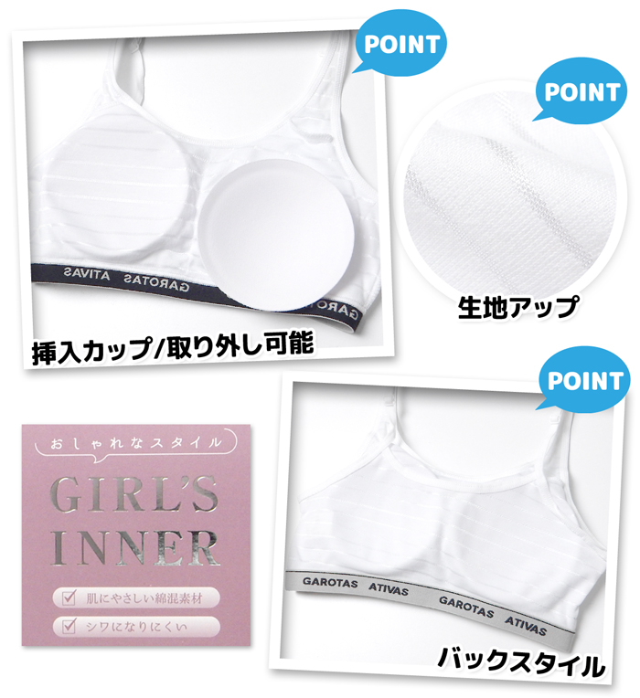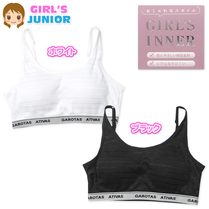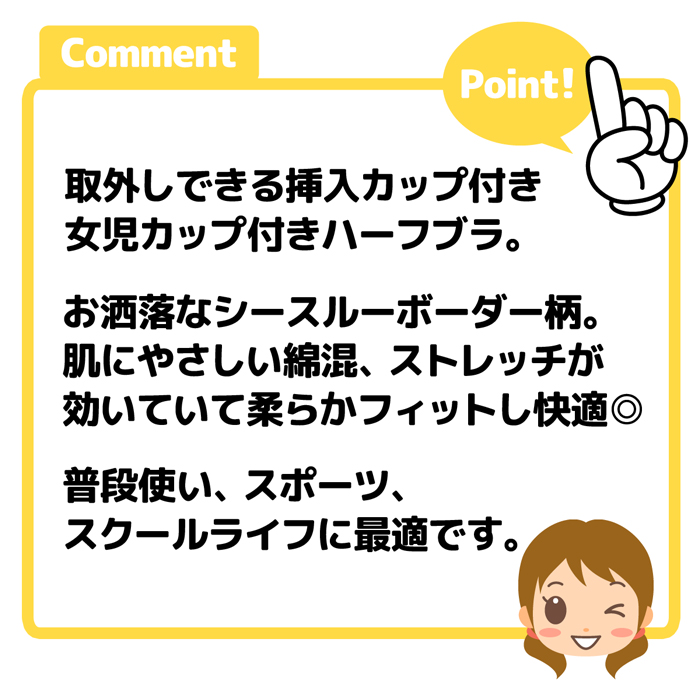 送料無料 女児 ジュニア 綿混 ハーフブラ 挿入カップ シースルーボーダー柄 肌にやさしい ストレッチ 下着 女の子 yg-3010 メール便対応