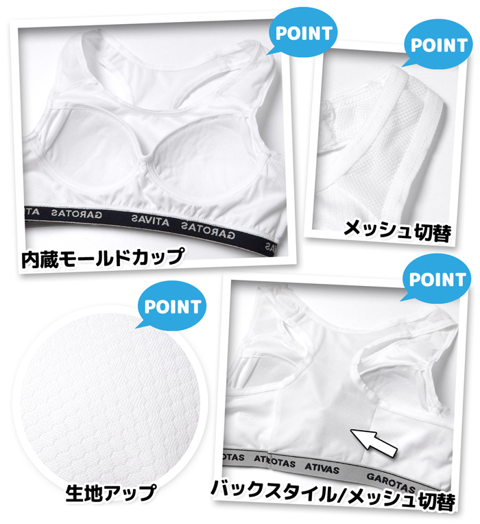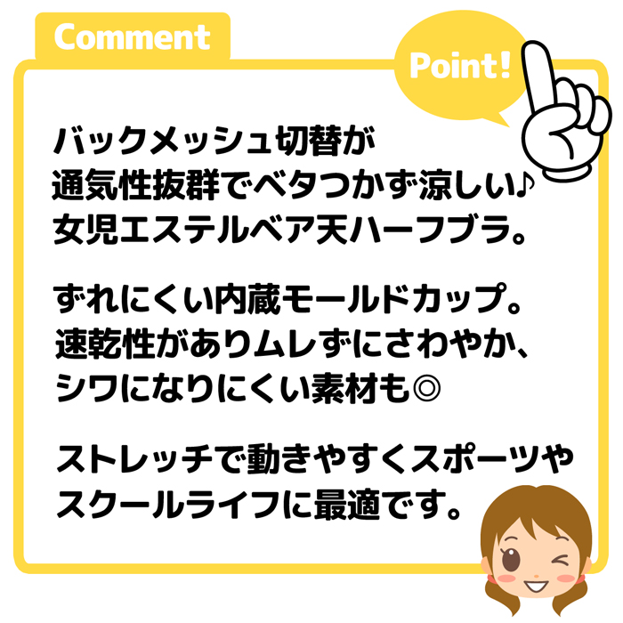 送料無料 女児 ジュニア バックメッシュ ハーフブラ 内蔵モールドカップ エステルベア天 速乾 ストレッチ 下着 yg-3012 メール便対応