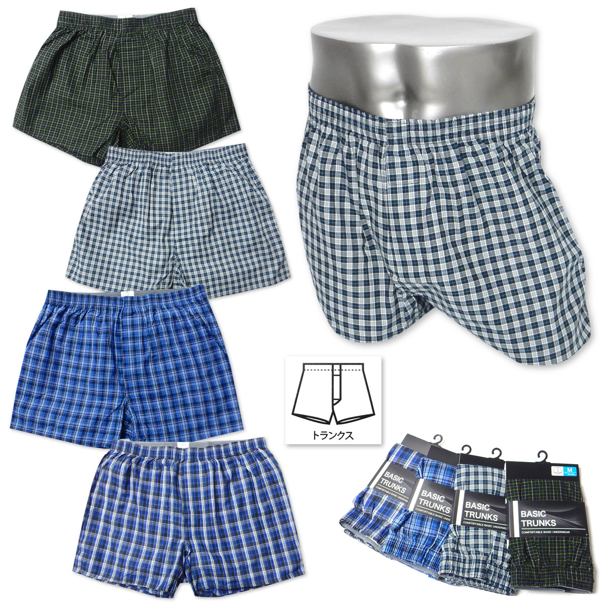 送料無料 紳士 メンズ トランクス 綿100% 前開きボタン 先染チェック柄 アンダーウェア 下着 M L LL 3L yg-3046b メール便対応