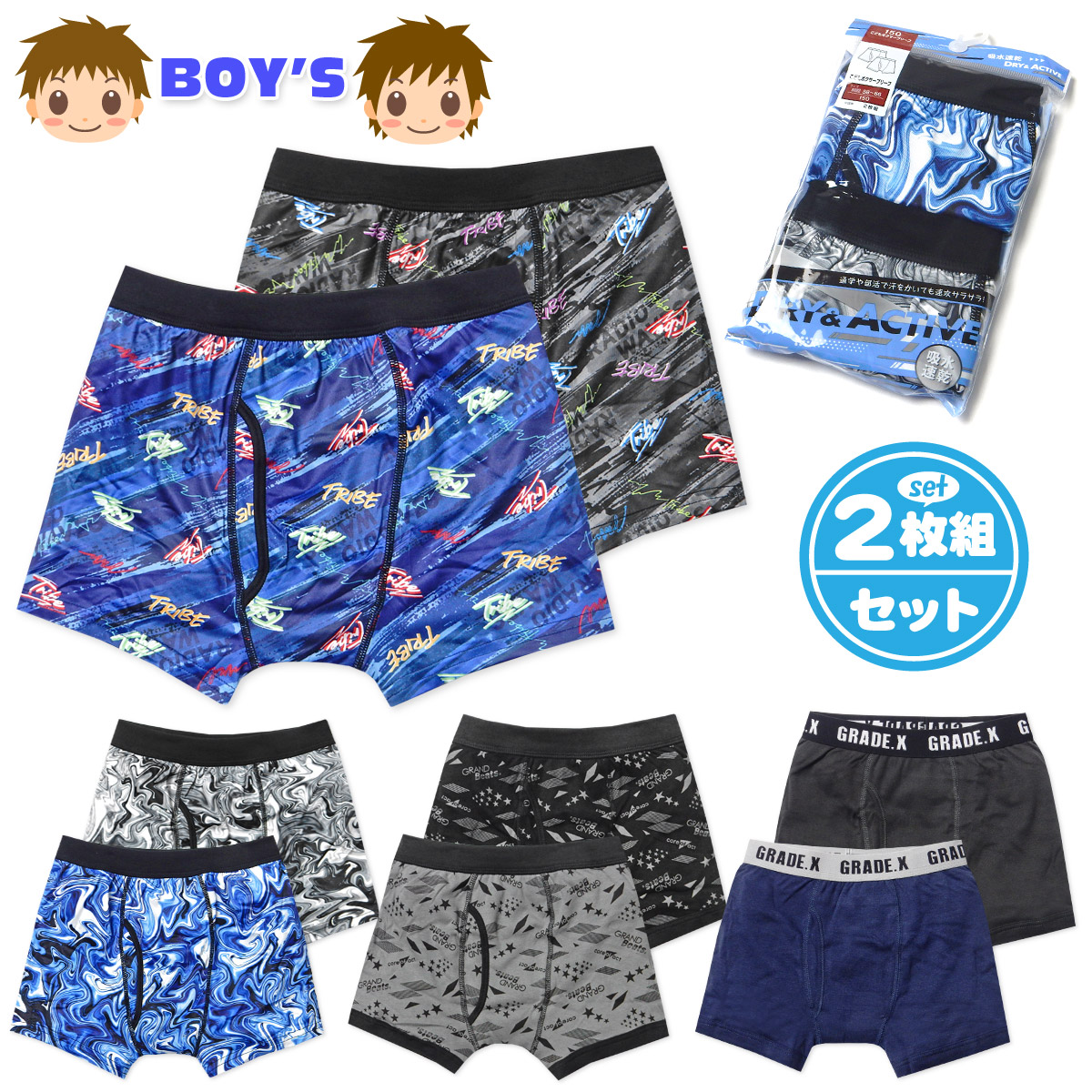 2枚組 前開き仕様男児ボクサーブリ