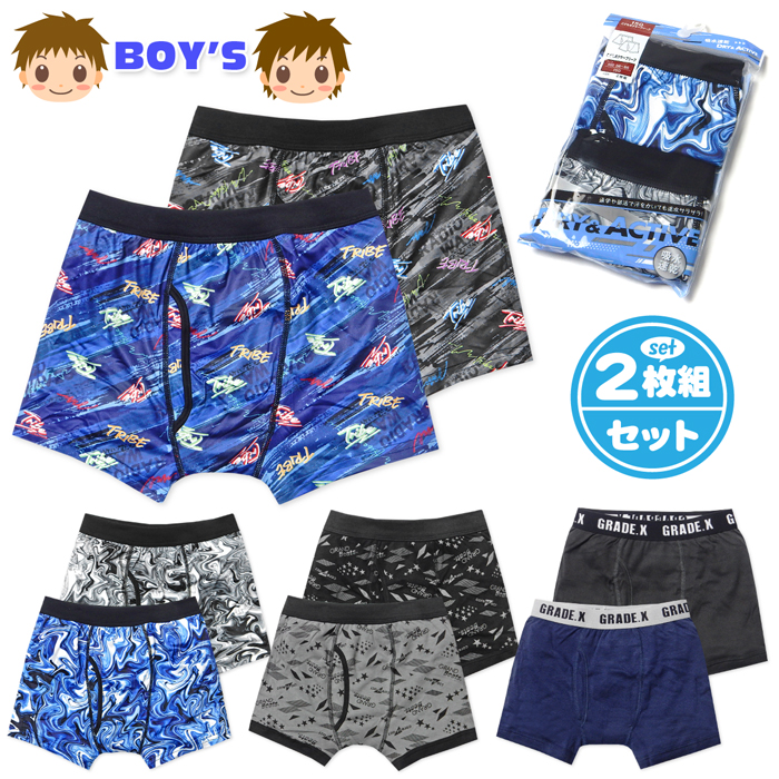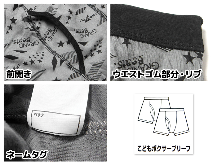 送料無料 2枚組セット 男児 キッズ ジュニア ボクサー ブリーフ 前開き 伸縮性 ネームタグ 下着 子供 男の子 yg-3115 メール便対応