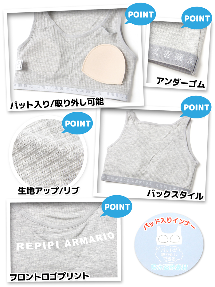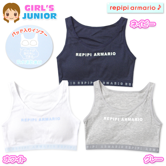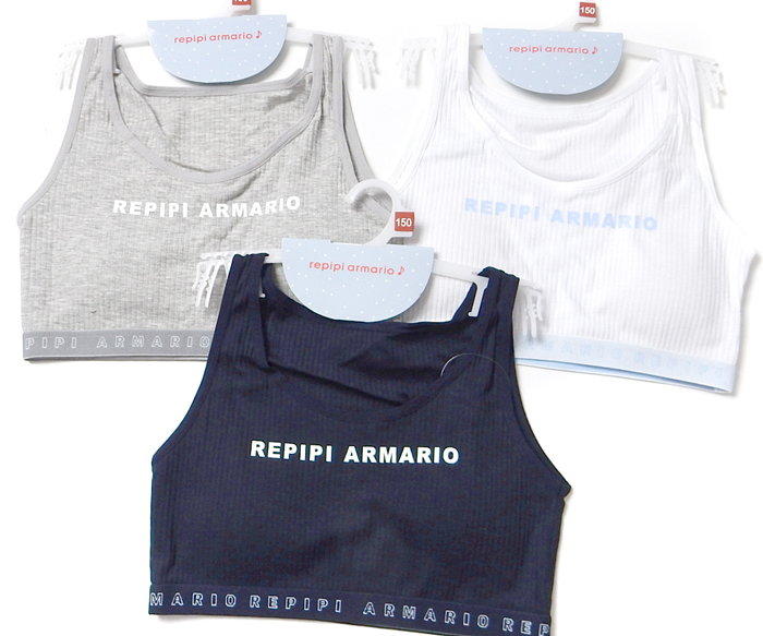 送料無料 女児 ジュニア 吸水速乾 ハーフトップ repipi armario リブ 取り外しできるパット入り ストレッチ 下着 yg-3150 メール便対応