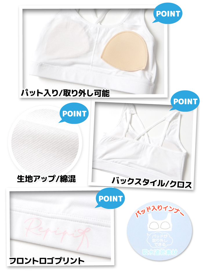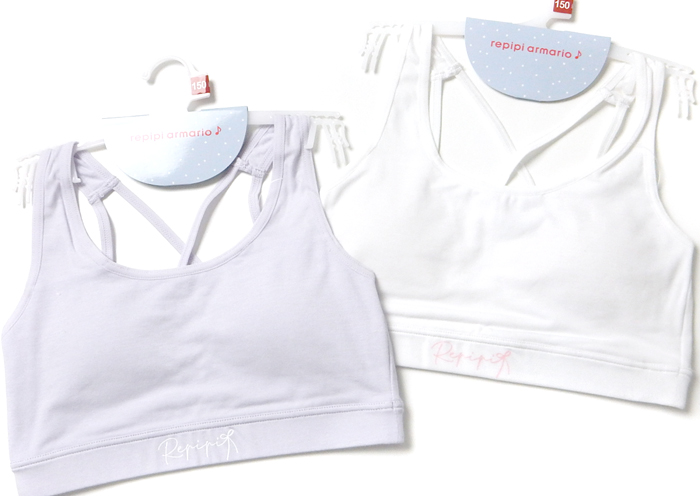 送料無料 女児 ジュニア 吸水速乾 ハーフトップ repipi armario 綿混 取り外しできるパット入り ストレッチ 下着 yg-3152 メール便対応