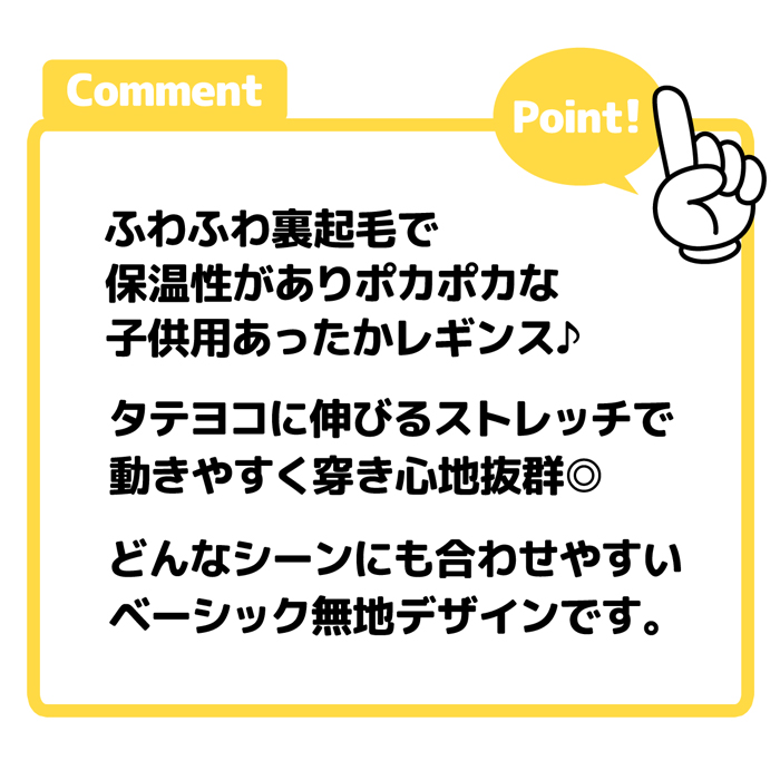 送料無料 男児 女児 キッズ ジュニア 裏起毛 レギンス 10分丈 あったか 厚手 ストレッチ ボトムス 子供 120cm 135cm 150cm yg-3220 メール便対応
