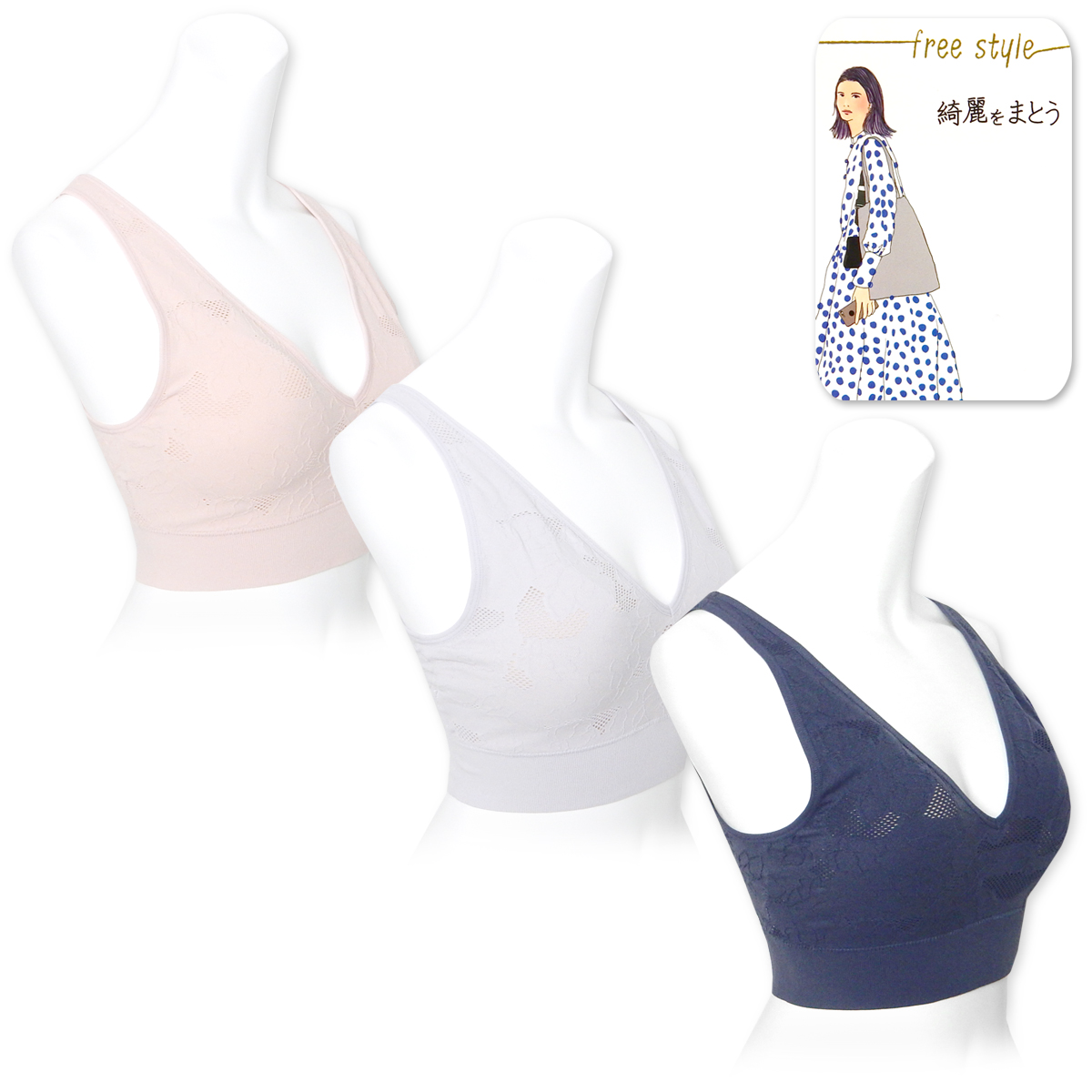 送料無料 婦人 レディース ハーフトップブラ ノンワイヤーブラ Vネック 取り外せる成型カップ付き ストレッチ 下着 ygf-0031 メール便対応