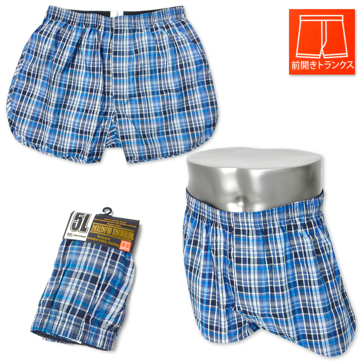 送料無料 大きいサイズ 紳士 メンズ トランクス 綿100% 前開きボタン 先染チェック柄 アンダーウェア 下着 5L 6L ygf-0146a メール便対応