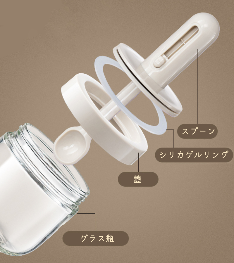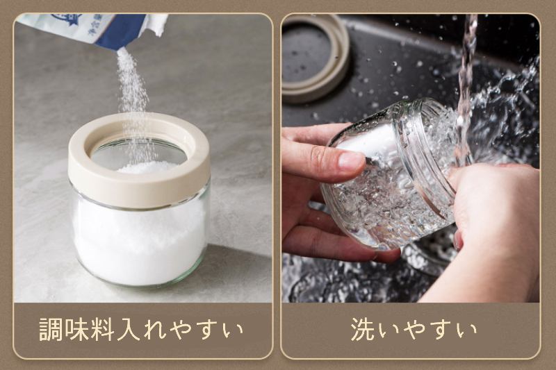 蓋の間にシリコンリング付き、調味料入れの密封性を高め、空気中の水分の侵入を防止、調味料の乾燥性を維持します。