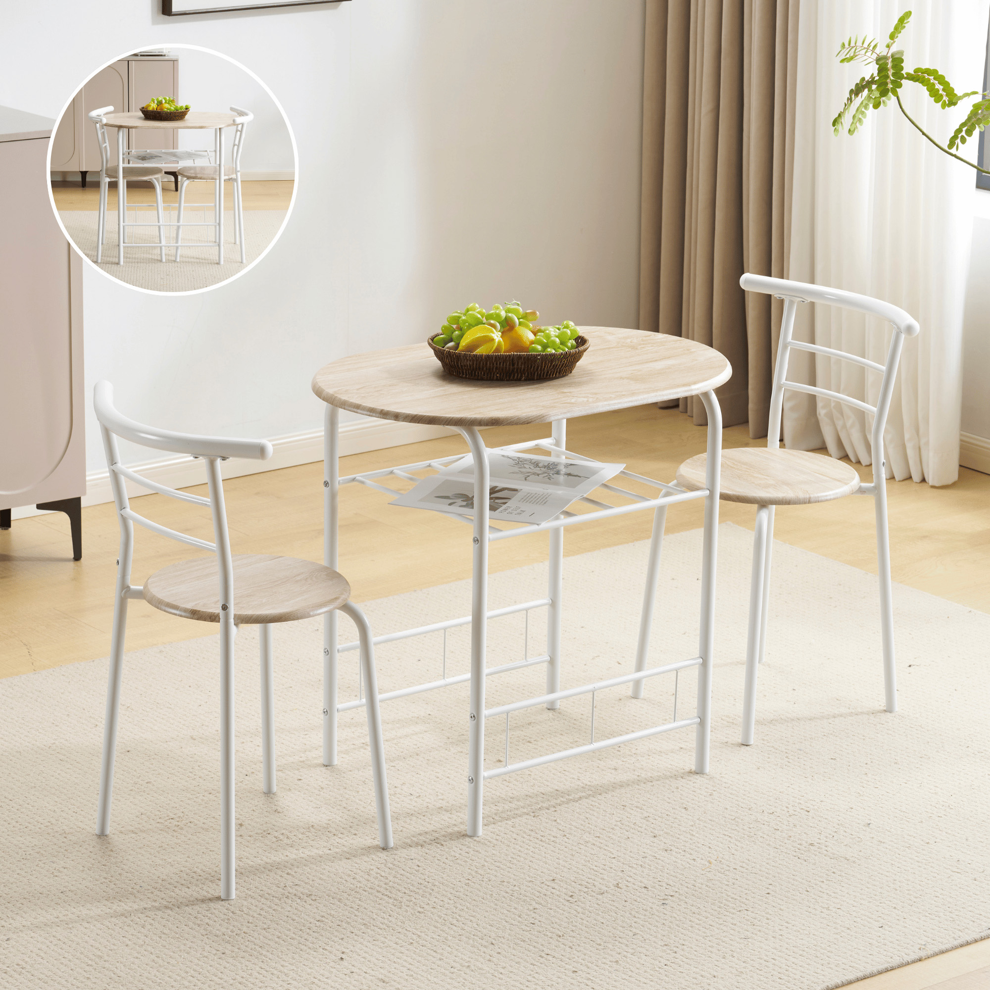 セット内容:円形ダイニングテーブル×1、チェア×2