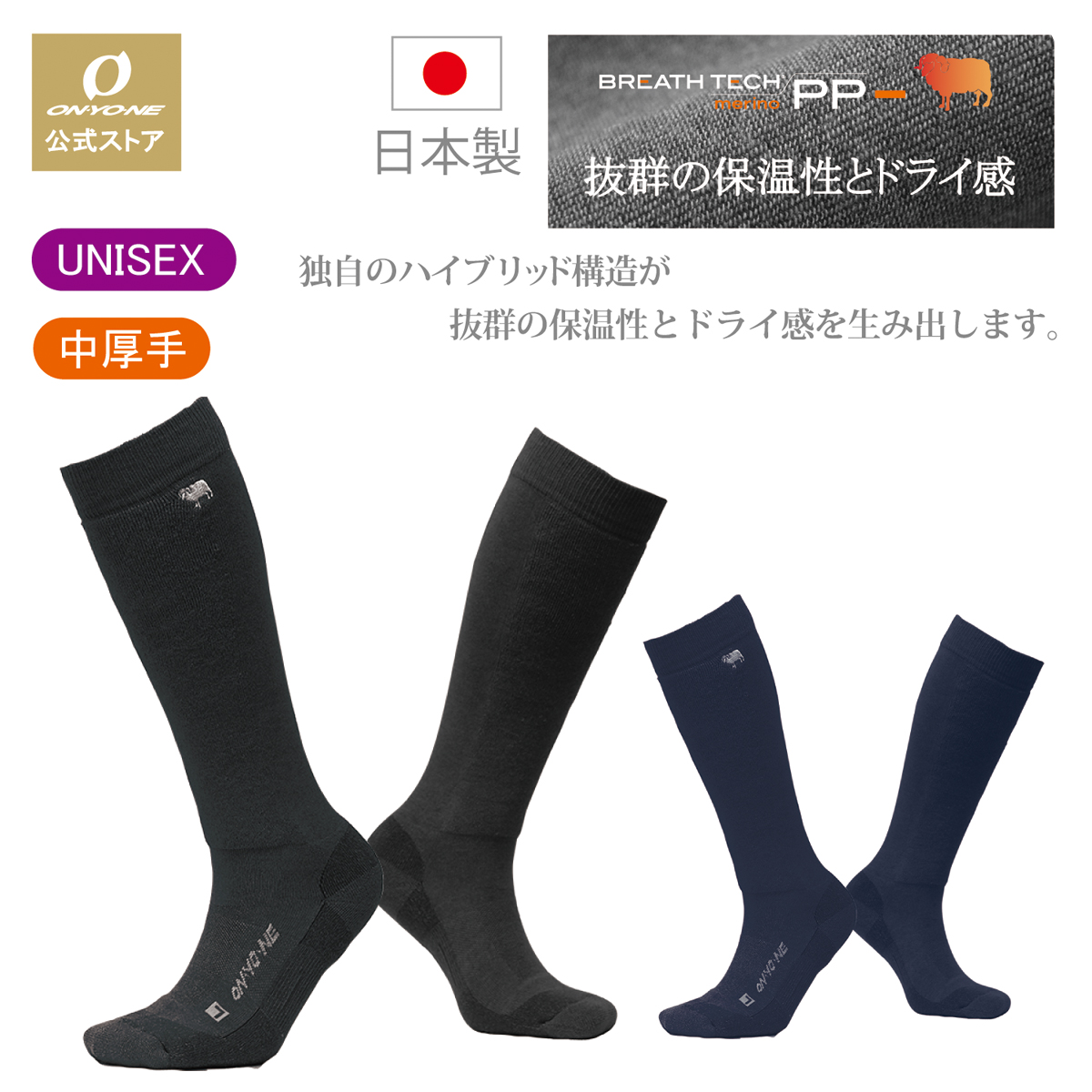 オンヨネ メリノ PP メリノウール ソックス ロング 登山 アウトドア キャンプ 靴下 中厚手 トレッキング ユニセックス 運動 保温 ドライ 吸汗速乾 トレラン 爆買