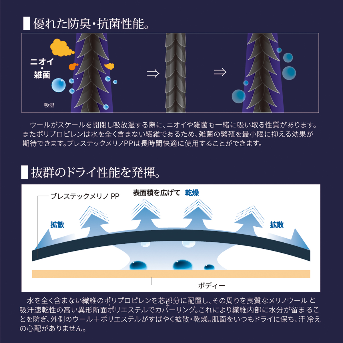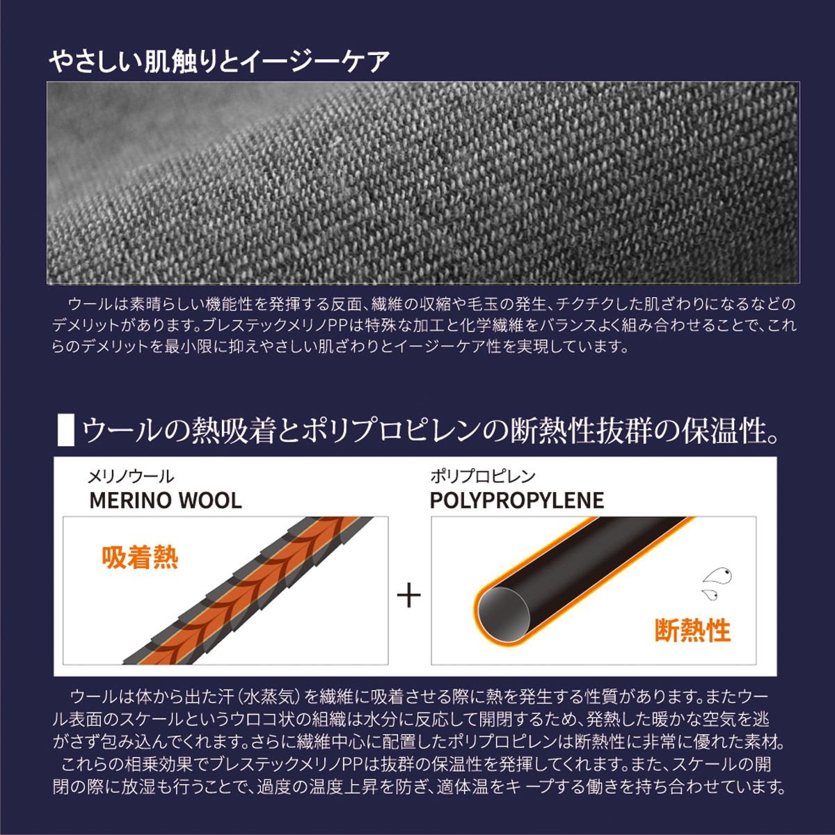 素材 ポリエステル60%、ポリプロピレン25%、メリノウール15%
