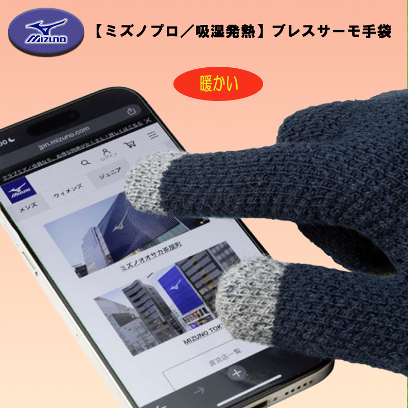 MIZUNO ミズノプロ 野球 ブレスサーモ 吸湿発熱 手袋 スマートフォン対応 防寒手袋 12JYBA01
