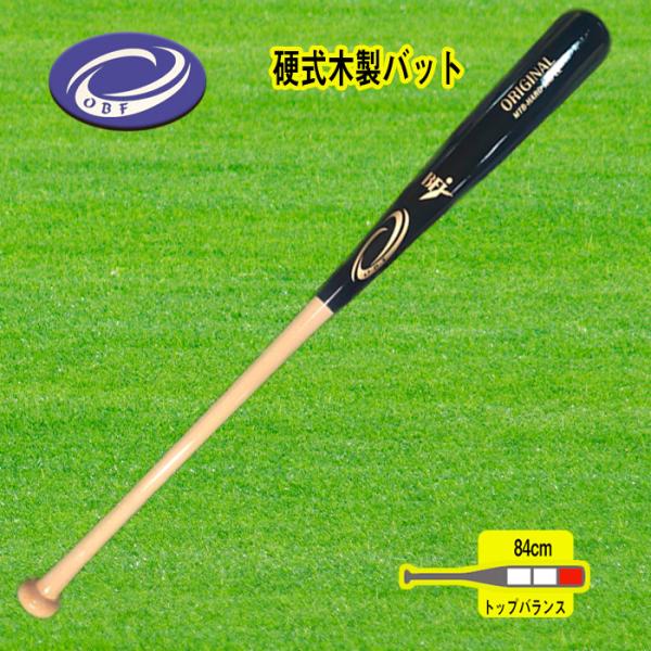オーバットファクトリー 硬式木製バット(白木×黒)トップバランス 84cm 860g平均 ハードメイプル BFJマーク入り OBF-HM03B