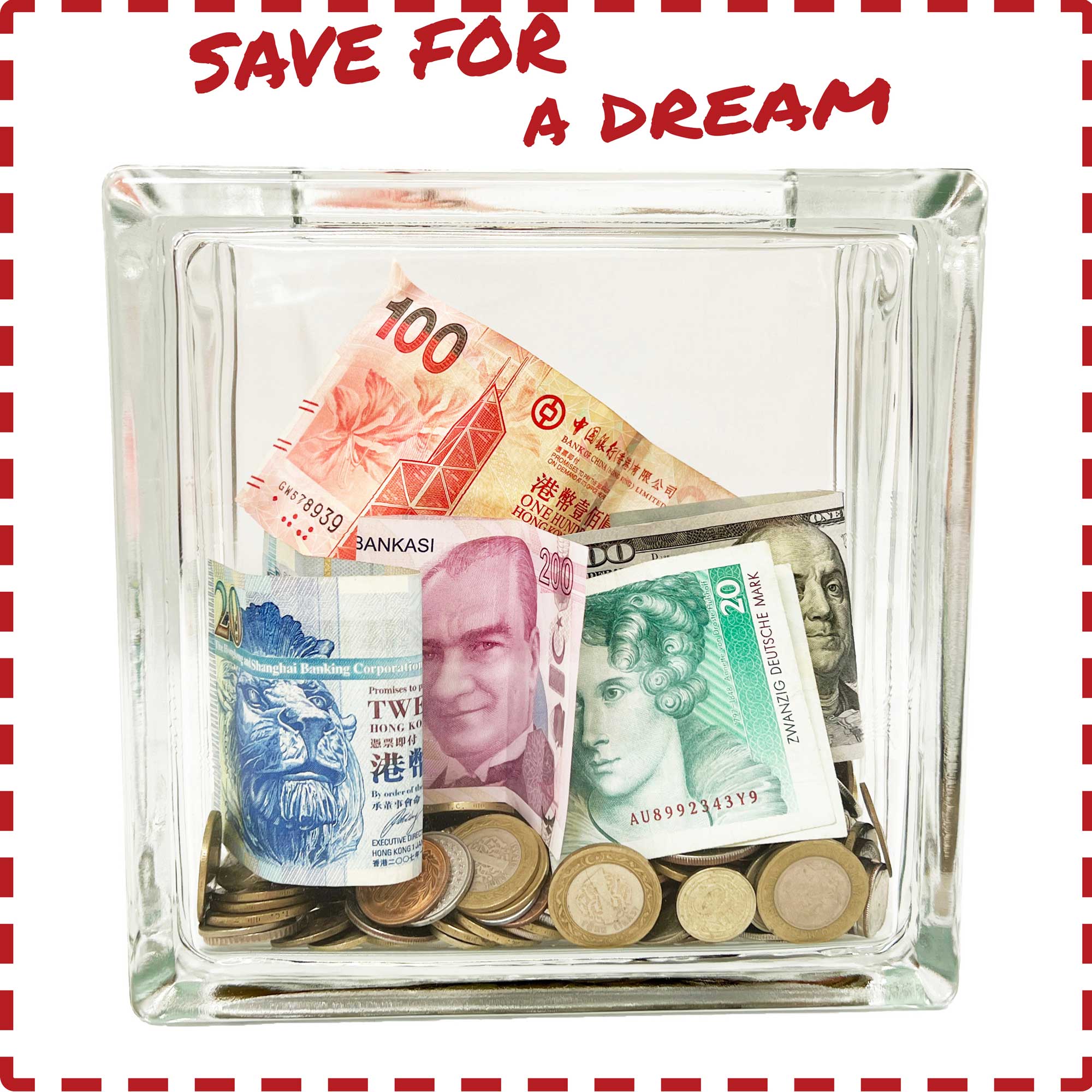 ONYX JAPAN ガラス ブロック バンク スクエア 透明 中が見える クラフト 貯金箱 コイン ディスプレイ インテリア ギフト 190x190x80 mm