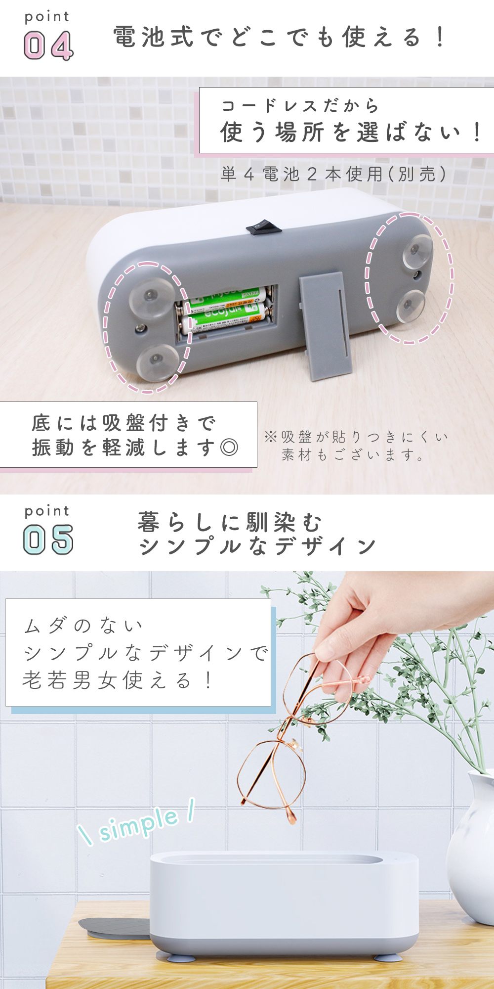 振動洗浄機/電池式/メガネ/時計ベルト/ジュエリー/アクセサリー/汚れ落とし/コードレス/持ち運び/時計/眼鏡/指輪/印鑑/マウスピース/貴金属/眼鏡洗浄器/小型/軽量/超音波クリーナー/眼鏡クリーナー/コンパクト/洗浄器/入歯/メイクブラシ/歯ブラシ/電動洗浄器/ミニ/手垢/油膜/金属/洗浄かご/シンプル/操作簡単/乾電池/旅行/持ち運び/卓上型/花粉対策/クリーニング/プラモデル/模型/塗装前/携帯型/TN-USCM/