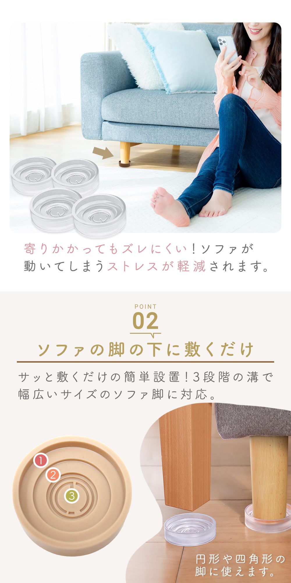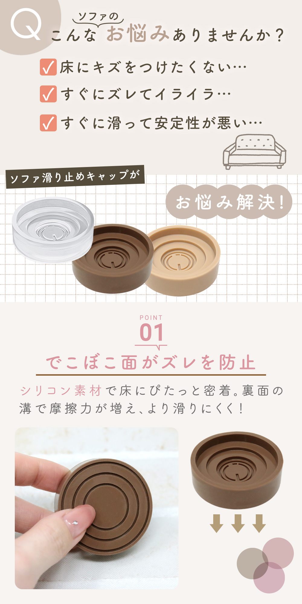 ソファー/滑り止め/4個入り/ズレ防止/キャップ/超強力/シリコン/マット/床保護/フローリング/傷防止//1人/2人/3人掛け/椅子/イス/チェアー/ダイニング/リビング/サイドテーブル/ソファベッド/目立たない/家具/インテリア/賃貸/アパート/マンション/新築/臭わない/のり不使用/ホールド/はみ出し防止/固定/脚カバー/ストッパー/寝室/プレゼント/贈り物/滑り止めマット/足/キズ防止/