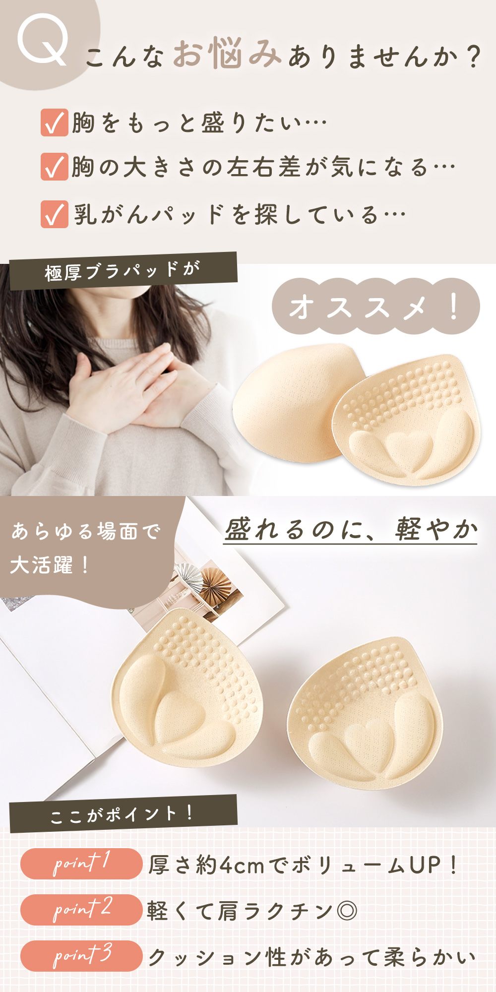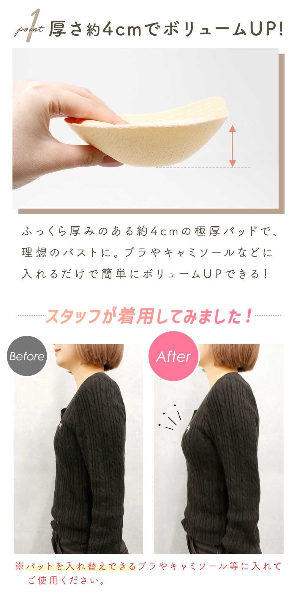 ・極厚設計で自然なボリュームアップしっかりとバストを持ち上げ、ナチュラルにボリュームアップ。