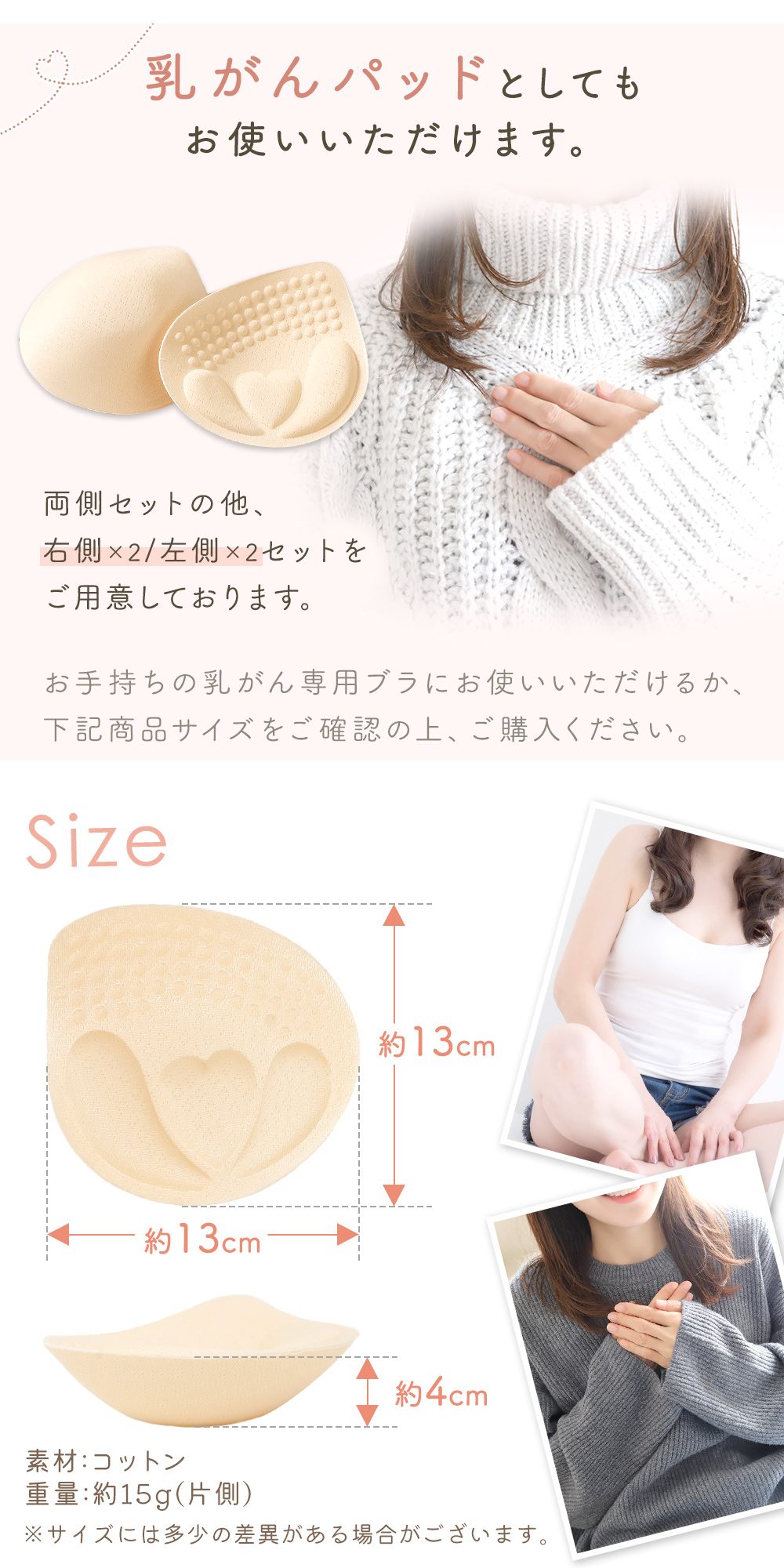 術後の体型補整やバストの左右差が気になる方にも便利です。