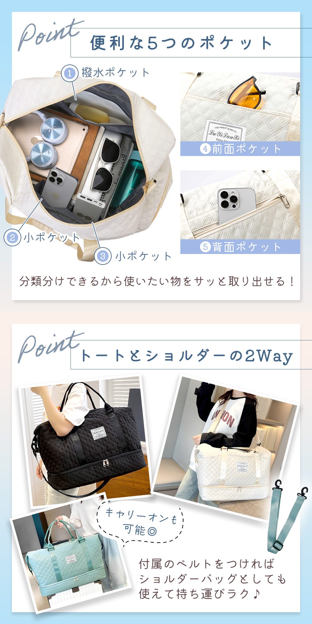 キルティング/ボストンバッグ/大容量/レディース/旅行カバン/鞄/ポケット/撥水/2WAY/トート/ショルダー/かわいい/おしゃれ/キルト/万能/マルチ/キャリーオン/スポーツ/ジム/斜め掛け/トラベル/持ち運び/機内持ち込み/マザーズバッグ/大きめ/女性/帰省/かばん/シンプル/入院/出産/日常使い/デイリー/斜めがけ/カジュアル/修学旅行/母の日/プレゼント/1泊/2泊/OL/20代/30代/40代/50代/TN-QTBB/