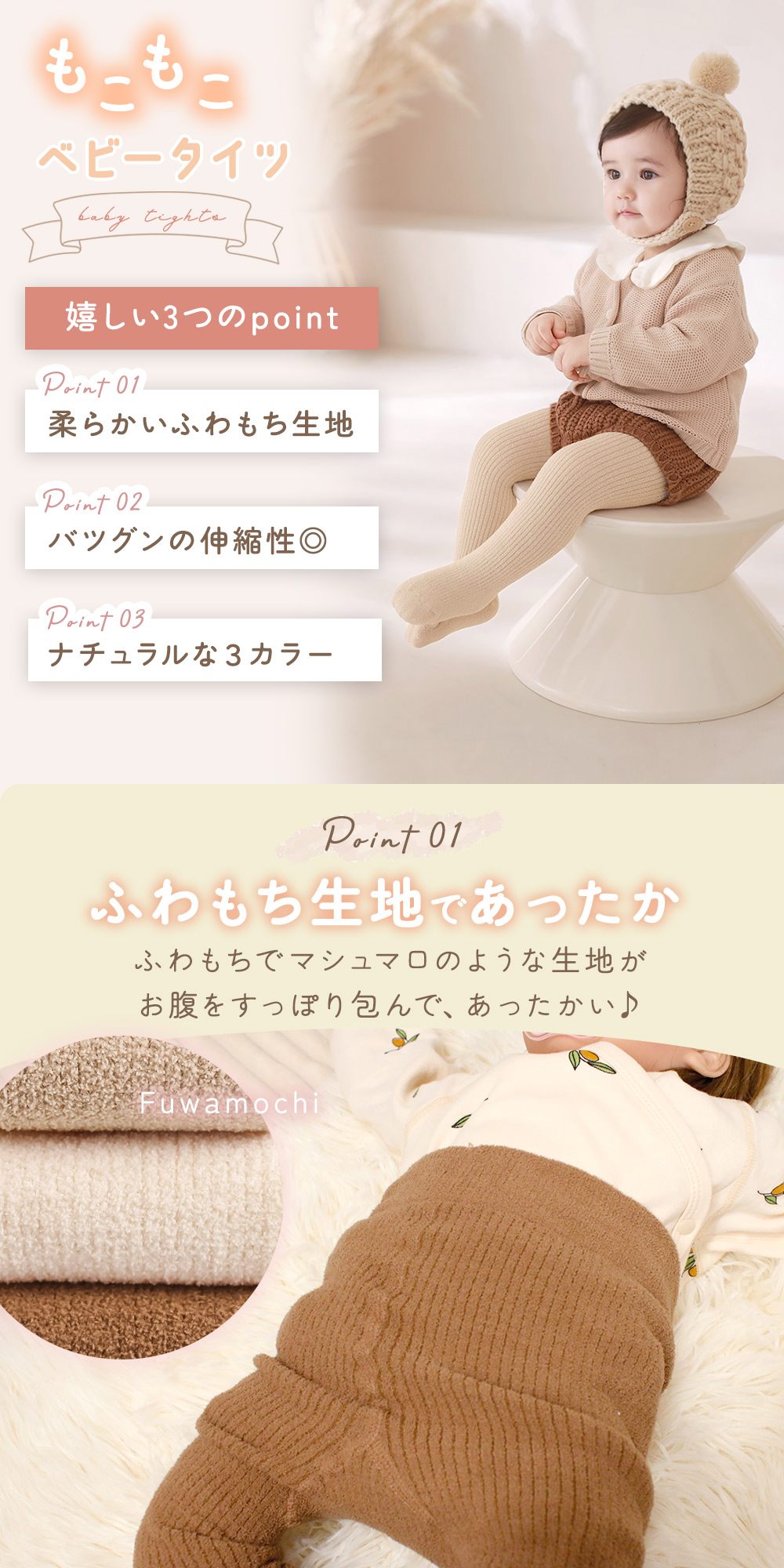 ベビータイツ/もこもこ/70/80/90/あったか/冬/もこもこ/伸縮性/女の子/男の子/ストレッチ/暖かい/ソックス/下着/インナー//レギンス/スパッツ/赤ちゃん/子ども/冷え/防寒対策/幼稚園/保育園/かわいい/カジュアル/フォーマル/ファッション/子供服/ベビー服/寝巻/6か月/12か月/1歳/2歳/出産祝い/プレゼント/贈り物/ギフト/足まで隠れる/記念撮影/インスタ映え/結婚式/TN-BTMO/