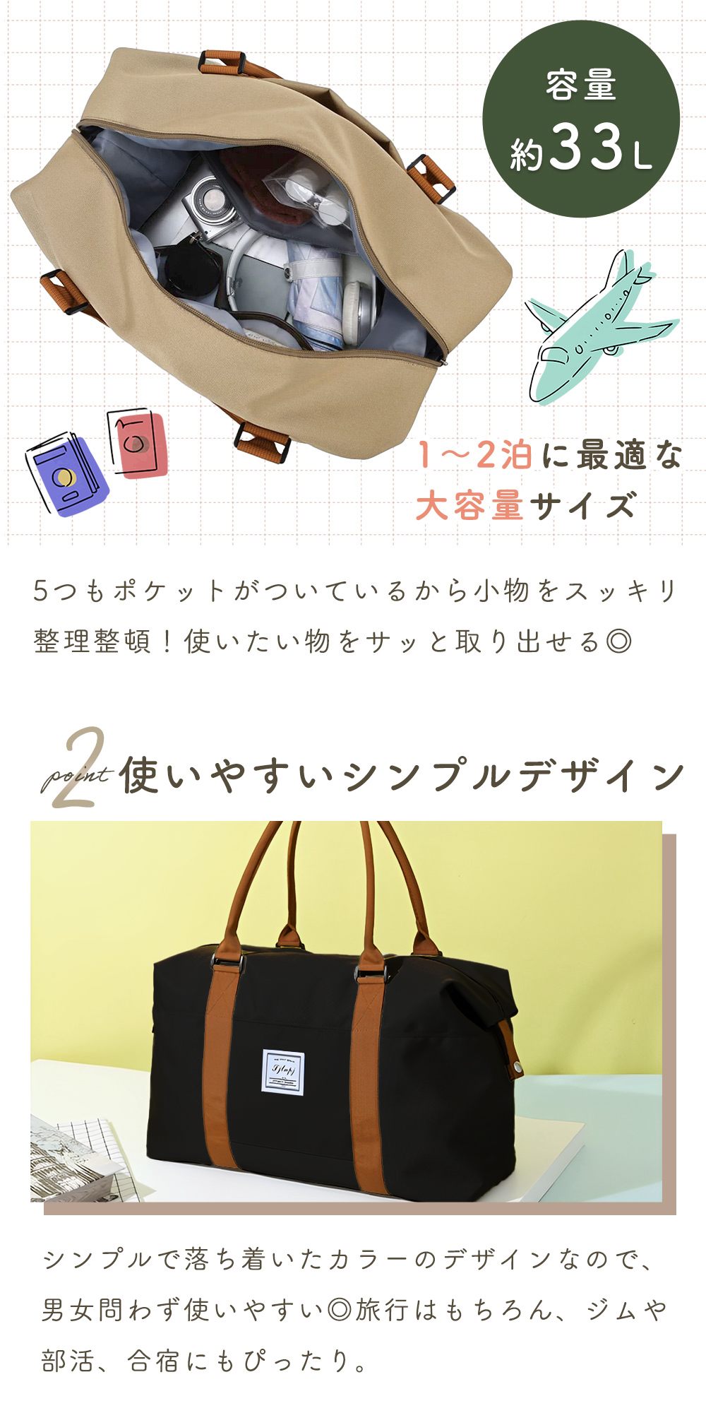 旅行バッグ /大容量/33L/丈夫/キャリーオンバッグ/シンプル/ボストンバッグ/大きめ/トラベル/鞄/かばん/レディース/メンズ/ユニセックス/折りたたみ/おしゃれ/軽量/収納/着替え/マザーズバッグ/1泊/2泊/軽い/機内持ち込み/入院/出張/お出かけ/かわいい/普段使い/出産準備/ポケット付き/合宿/海外旅行/修学旅行/部活/ジムバッグ/スポーツバッグ/ゴルフ//防災/緊急時/避難/地震/サブバッグ/温泉/多機能/帰省/TN-BTBG/