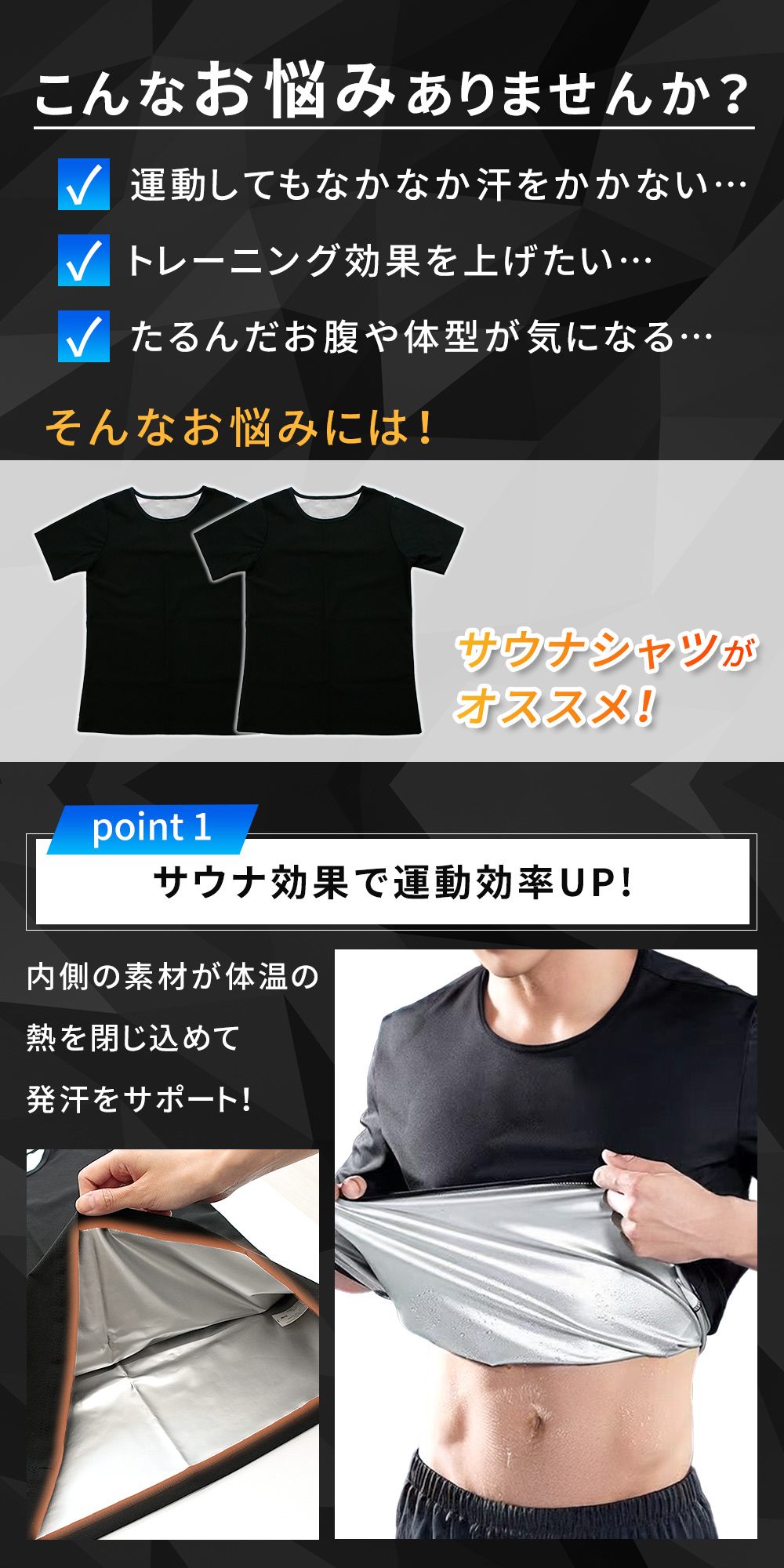 ・トレーニング効率を高めるサウナシャツ着るだけでじんわり、発汗効果を高めたサウナシャツ。