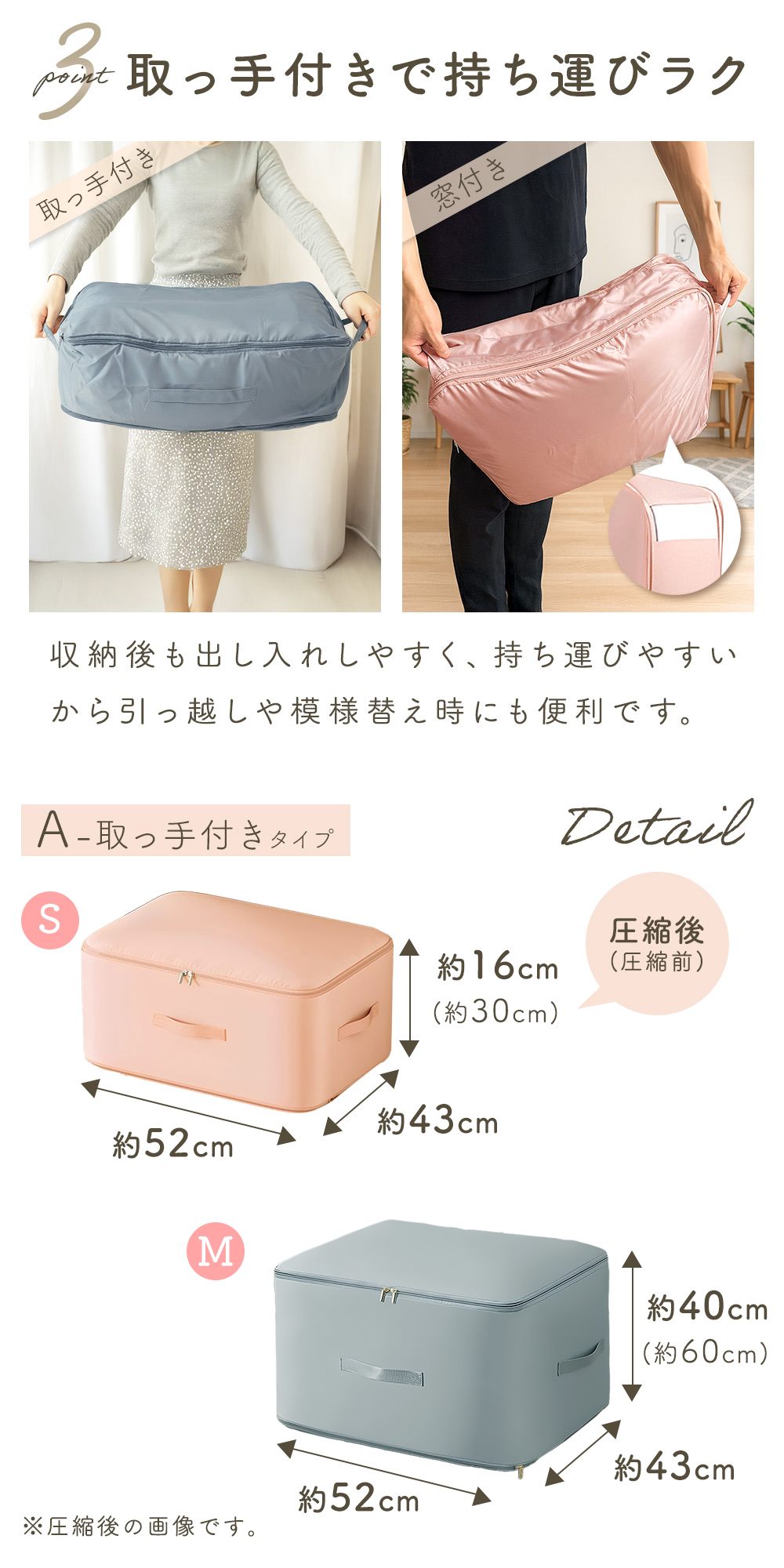 持ち手付きの布団収納袋は、出し入れや持ち運びがスムーズ。