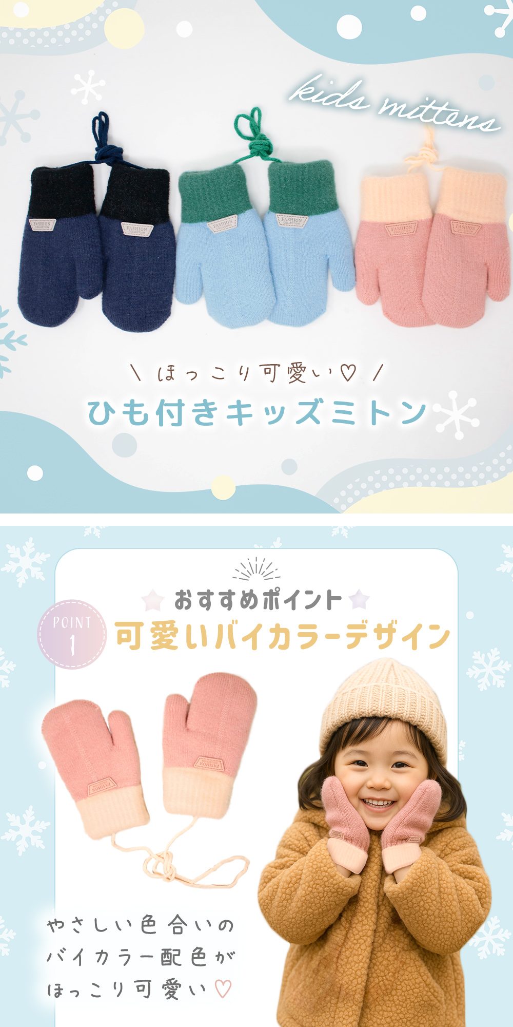 ・紐付きで失くしにくいから通園に最適左右をつなぐ紐付きだから、コートの中に通せば落下防止に。保育園・通園・お買い物でも「片方だけ無い」を防ぎやすいのがポイント。忙しいママ・パパも安心の“失くしにくい”キッズ手袋です。