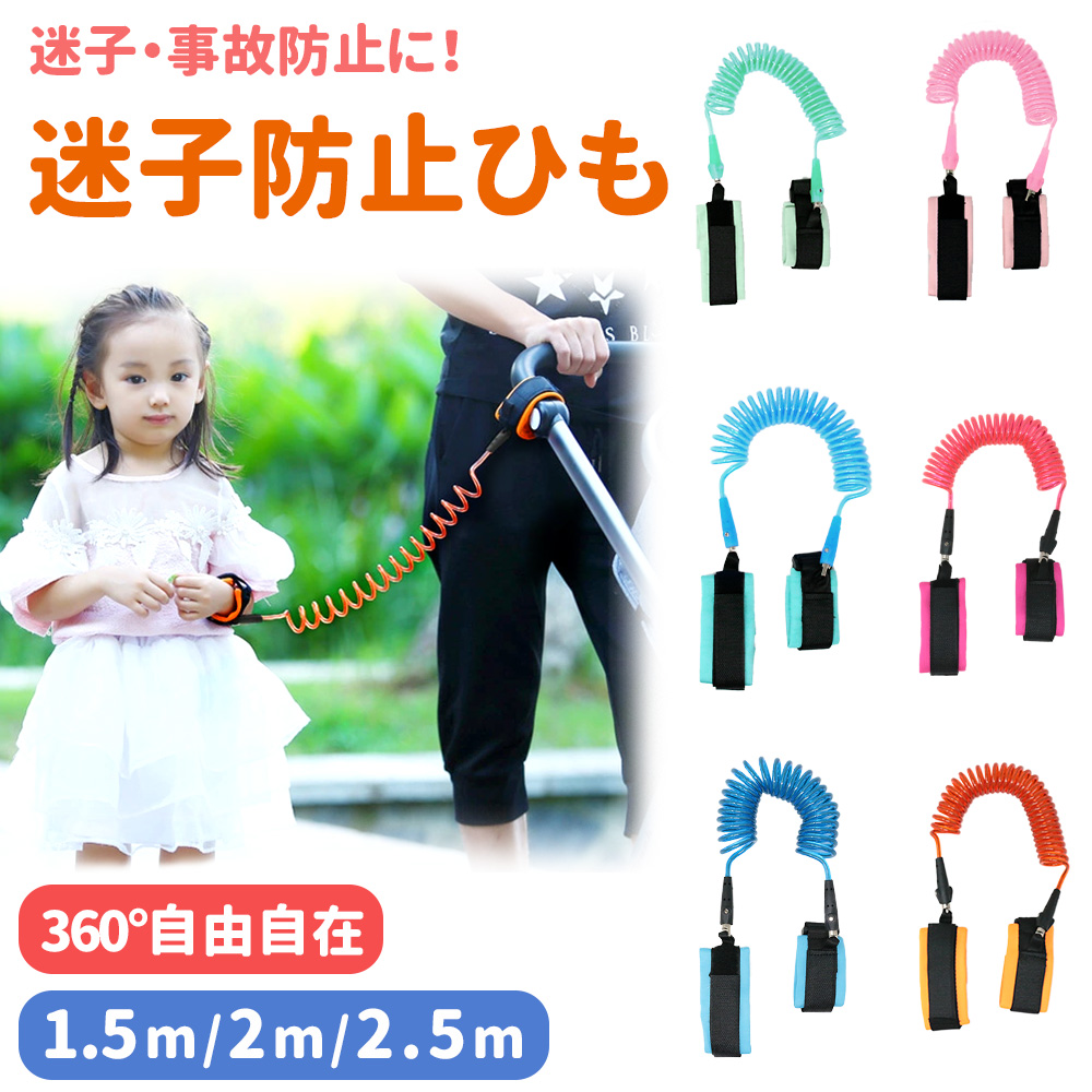 迷子/迷子防止/防止/迷子防止紐/リストバンド/迷子紐/お散歩/ハンドベル/ロープ/ハーネス/セーフティ/安全/リュック/迷子対策/お散歩/飛び出し/飛び出し防止/お散歩/手つなぎ/旅行/お出かけ/ベビー/子供/こども/迷子防止グッズ/危険防止/セーフティハーネス/1.5m/2.5m/ブルー/ピンク/オレンジ/手首ハーネス/幼児/テーマパーク/人混み/360度回転/防犯/安全対策/伸びる/セーフティーグッズ/