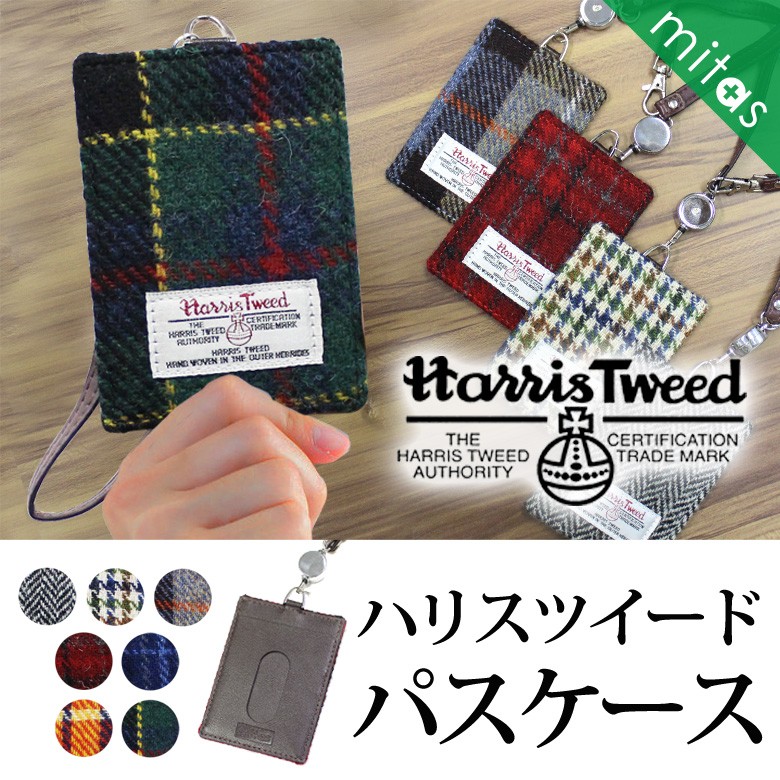 ハリスツイード生地を使ったパスケース★バッグチャームとして付けておけば伸縮自在なリール仕様でバッグから取り出さずにお使い頂けます