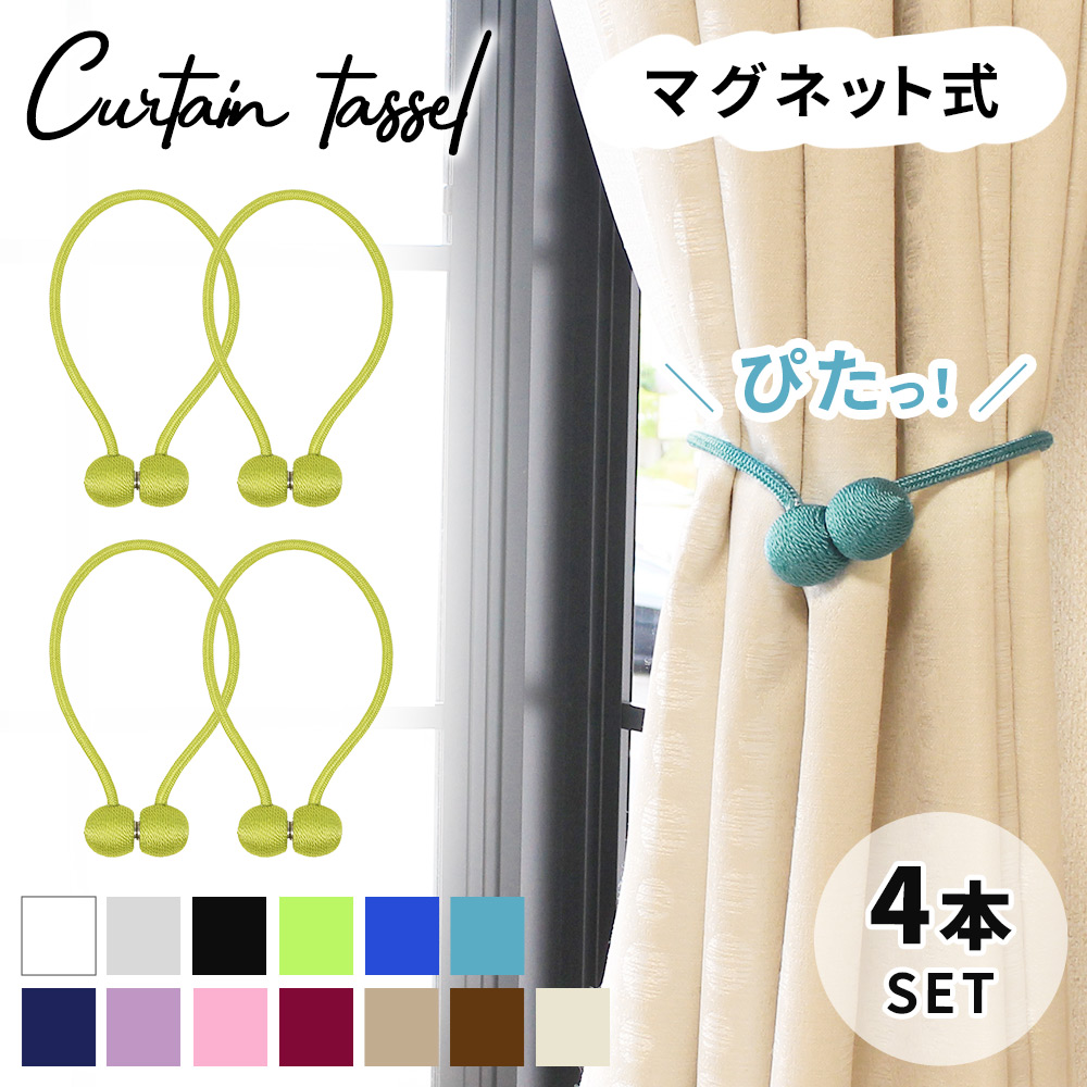 カーテンタッセル マグネット 4本セット ロープ 北欧 黒 強力 磁石 おしゃれ カーテン留め具 ふさかけ MILASIC ポイント消化
